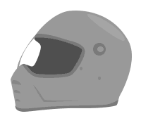 ③ フルフェイスヘルメット:頭部全体を覆う構造で、安全性が最も高いタイプ。