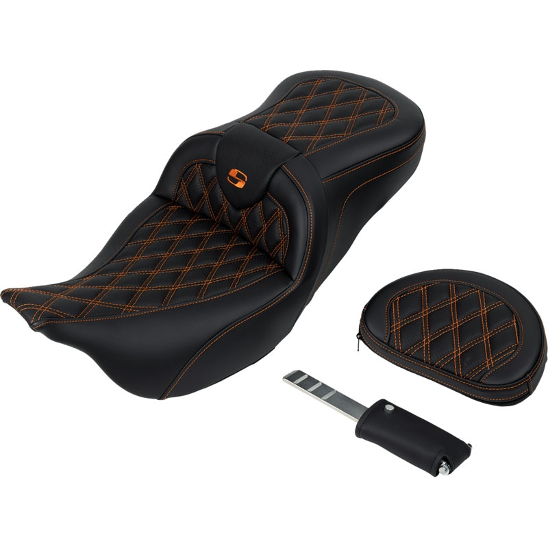 オールドスクールなLattice stitch (LS)格子状のステッチが入ったモダンなスタイリングが魅力のROAD SOFAシートのライダーバックレスト付きモデル。