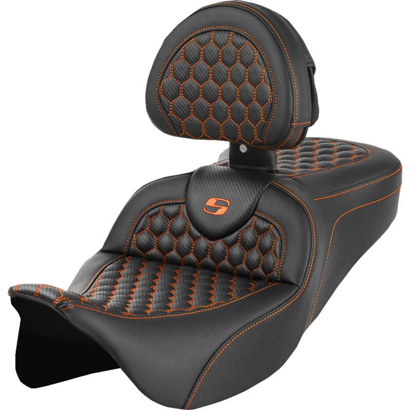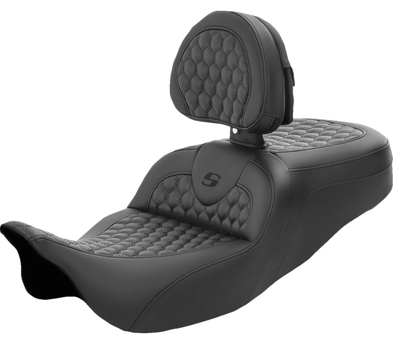 モダンな幾何学模様のハニカム(HoneyComb)パターンのステッチが入ったROAD SOFAシートのライダーバックレスト付きモデル。