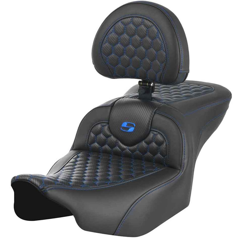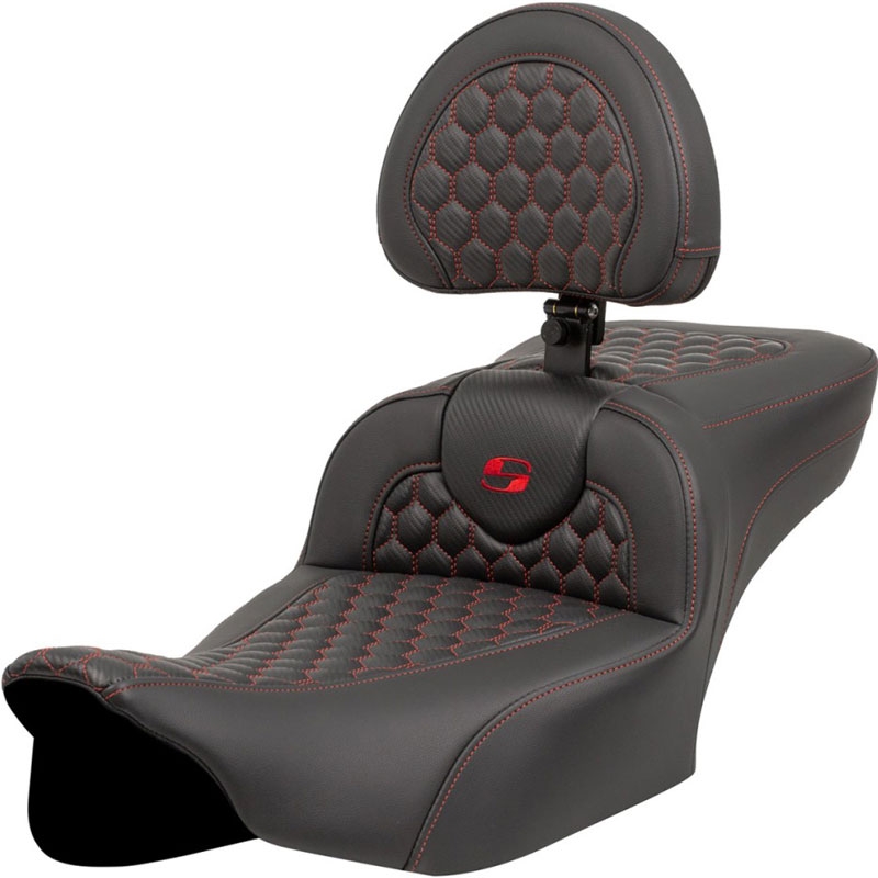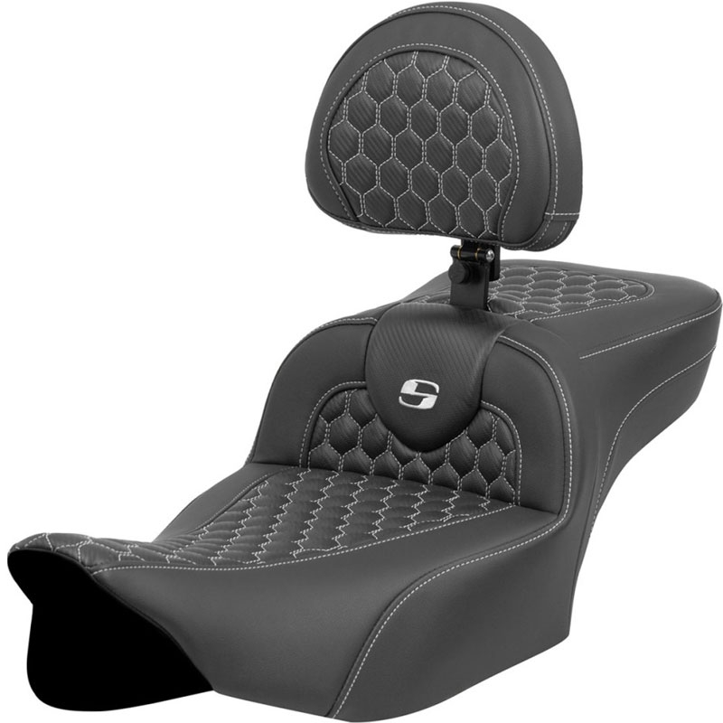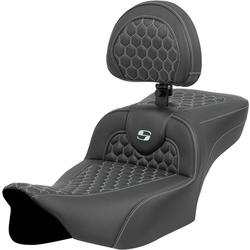 モダンな幾何学模様のハニカム(HoneyComb)パターンのステッチが入ったROAD SOFAシートで、着座位置が2インチ(約5cm)後方に下がるエクステッドリーチシート。