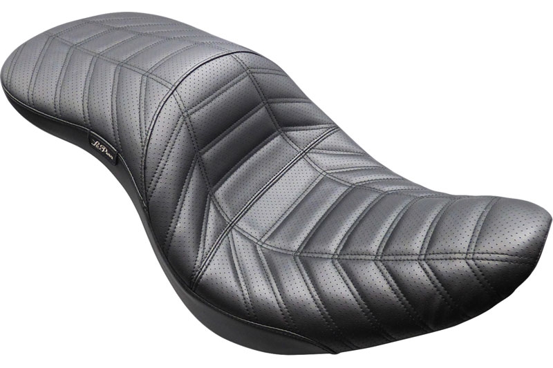 レーストラックを意識したMAVERICKのレースバージョンの背の高い方向けにライダー側の足のスペースが2インチ(約5.1cm)確保されたDADDY LONG LEGSシート。