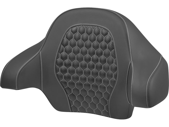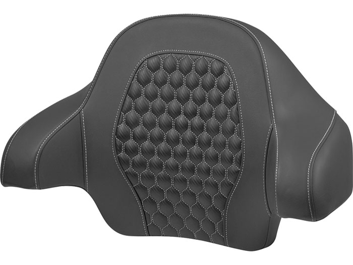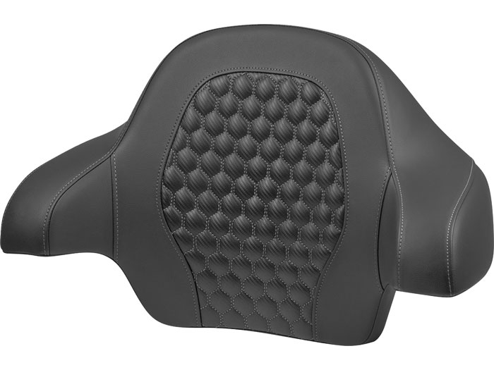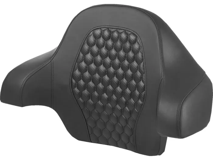 SADDLEMENの幾何学模様のハニカム(HoneyComb)パターンのステッチが入ったキングツアーパック用ツアーパックバックレストパッド。