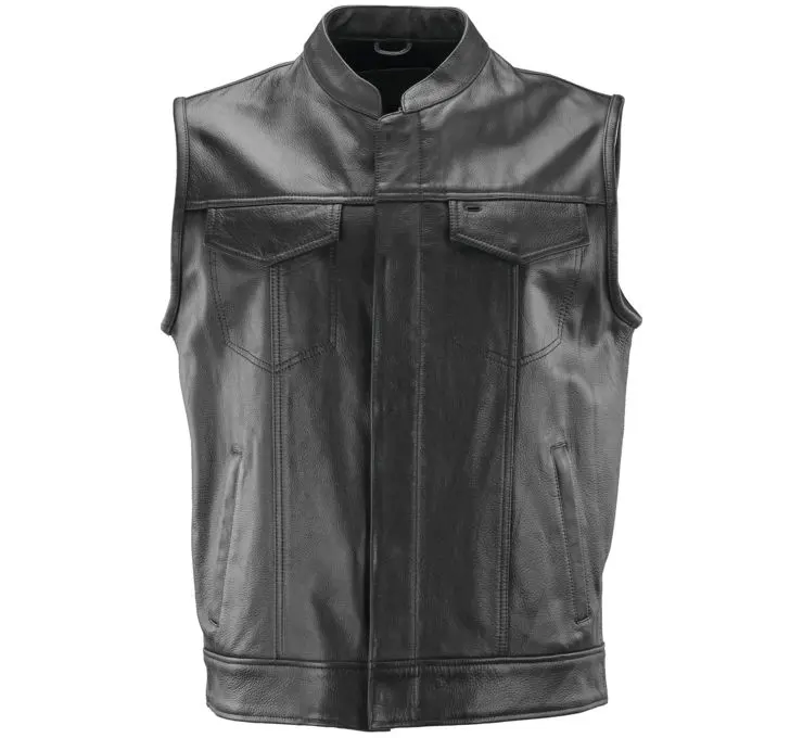スナップアップレザーベストは総裏地付きで快適なフィット感を実現し、さまざまな機能的な収納を備えています。