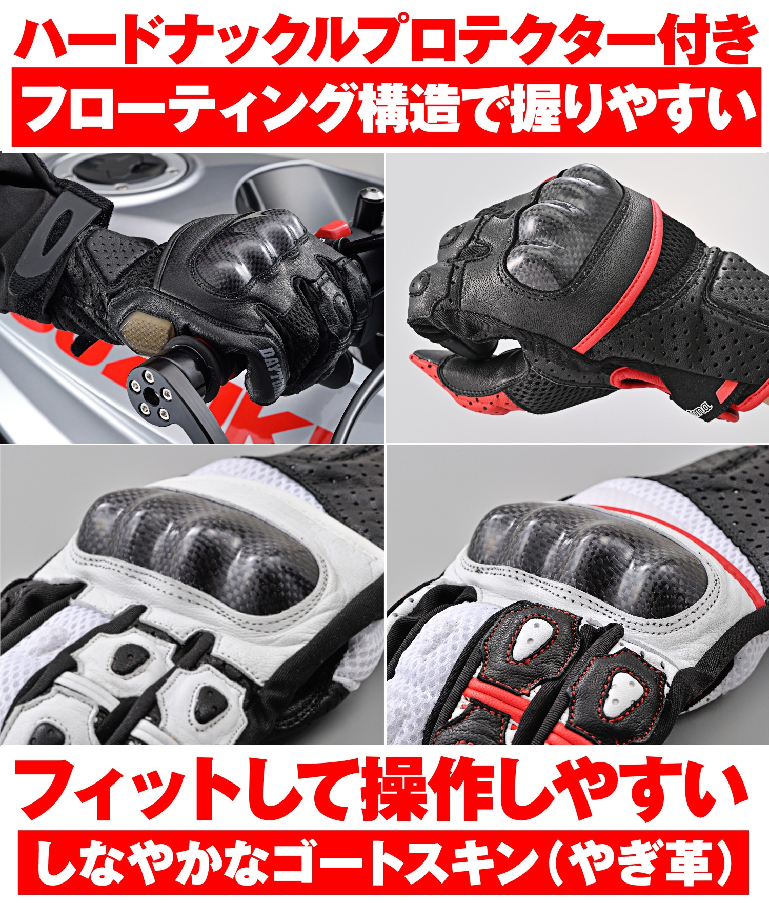 - やぎ革(表地)/ポリエステル(表地・裏地)/カーボン・ポリエステル(プロテクター)/TPU(パームスライダー)