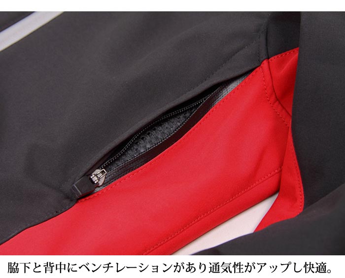 脇下と背中にベンチレーションがあり通気性がアップし快適。