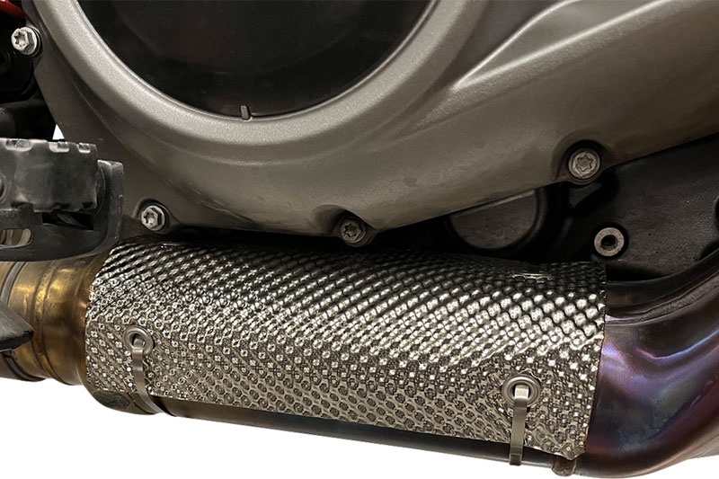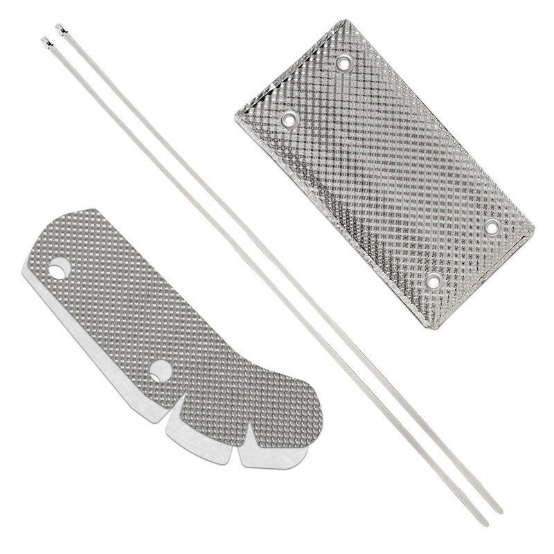 各パーツはエキゾーストパイプとヒートシールドの間にフィットするように精密にカットされており、取り付けは簡単で、加工は必要ありません。
