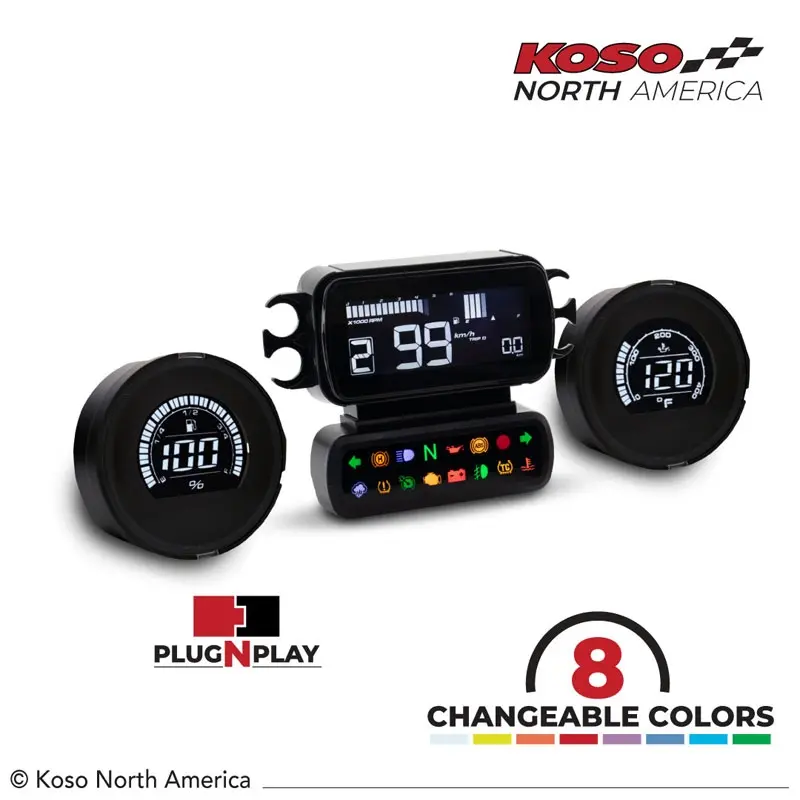 8色切り替え可能なLCDディスプレイを搭載し、エンジン温度、バッテリー電圧、タイヤ空気圧、ギアインジケーターなどの重要な情報を表示する他、バイクの状態を監視するための各種インジケーターライトも備えています。