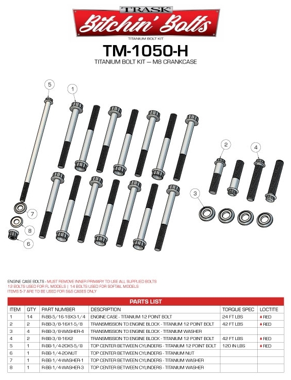 Bitchin' クランクケース ボルトキット TRASK(トラスク) 39,890 398 24011804 TM-1050-H 0 取り寄せ カートに入れる お気に入り 入荷連絡 電話注文・お問い合わせ 052-744-1891 電話受付 10:00~19:00年末年始除く 送料:700円~送料・お支払について 合計金額 30,000円以上のお買い物で送料無料 この商品について問い合わせる お問い合わせフォーム LINE からお問い合わせ 商品詳細 適合確認 車体番号からモデル・年式を調べる 注意事項メーカーが公表している適合情報に基づく結果となります。「エンジンガード装着車は除く」「ABS車両に適合」など付随する適合表記をよくご確認ください。適合と判断されているものでも実際には装着できない場合もございます。 年式 - - - 2025 2024 2023 2022 2021 2020 2019 2018 2017 2016 2015 2014 2013 2012 2011 2010 2009 2008 2007 2006 2005 2004 2003 2002 2001 2000 1999 1998 1997 1996 1995 1994 1993 1992 1991 1990 1989 1988 1987 1986 ~1985 モデル - - - FLD スイッチバック FLDE デラックス FLFB ファットボーイ FLFBS ファットボーイ114 FLFBSANV ファットボーイ114 アニバーサリー FLH エレクトラグライド リバイバル FLHC ヘリテイジクラシック FLHCS ヘリテイジクラシック114 FLHCSANV ソフテイルクラシック114アニバーサリー FLHFB エレクトラグライド ハイウェイキング FLHR ロードキング FLHR I ロードキング インジェクション FLHRC ロードキング クラシック FLHRC I ロードキング クラシック インジェクション FLHRS ロードキング カスタム FLHRS I ロードキング カスタム インジェクション FLHRSE ロードキング FLHRSE 3 ロードキング FLHRSE 4 ロードキング FLHRSE 5 ロードキング FLHRSE I FLHRSE I 2 FLHRXS ロードキングスペシャル FLHS エレクトラグライドスポーツ FLHT エレクトラグライドスタンダード FLHT I エレクトラグライド インジェクション FLHTC エレクトラグライド クラシック FLHTC I エレクトラグライド クラシック インジェクション FLHTCSE FLHTCSE 2 FLHTCU エレクトラグライド ウルトラ クラシック FLHTCU I エレクトラグライド ウルトラ クラシック インジェクション FLHTCU S/C エレクトラグライド ウルトラ クラシック サイドカー FLHTCUI S/C エレクトラグライド ウルトラ クラシック インジェクション サイドカー FLHTCUL エレクトラグライド ウルトラ クラシック ロー FLHTCUSE FLHTCUSE 2 エレクトラグライド ウルトラ クラシック FLHTCUSE 3 エレクトラグライド ウルトラ クラシック FLHTCUSE 4 エレクトラグライド ウルトラ クラシック FLHTCUSE 5 エレクトラグライド ウルトラ クラシック FLHTCUSE 6 エレクトラグライド ウルトラ クラシック FLHTCUSE 7 エレクトラグライド ウルトラ クラシック FLHTCUSE 8 エレクトラグライド ウルトラ クラシック FLHTCUTG トライグライドウルトラ FLHTCUTGANV トライグライドウルトラ アニバーサリー FLHTCUTGSE CVO トライグライド FLHTK ウルトラリミテッド FLHTK103 W/SC ウルトラ リミテッド サイドカー FLHTKANV ウルトラリミテッド アニバーサリー FLHTKL ウルトラリミテッド ロー FLHTKSE FLHX ストリートグライド FLHX I ストリートグライド インジェクション FLHXS ストリートグライド スペシャル FLHXSANV ストリートグライドスペシャル アニバーサリー FLHXSE CVOストリートグライド FLHXSE 2 CVOストリートグライド FLHXSE 3 CVOストリートグライド FLHXST ストリートグライドST FLHXU ストリートグライド ウルトラ FLHXXX ストリートグライドトライク FLI ハイドラグライド リバイバル FLRT フリーウィーラー FLS ソフテイル スリム FLSB ソフテイル スポーツグライド FLSL ソフテイル スリム FLSS ソフテイル スリムS FLST ソフテイル スタンダード FLST I ヘリテイジ ソフテイル インジェクション FLSTC ヘリテイジ ソフテイル クラシック FLSTC I ヘリテイジ ソフテイル クラシック インジェクション FLSTF ファットボーイ FLSTF I ファットボーイ FLSTFB ファットボーイ ロー FLSTFBS ファットボーイS FLSTFI ファットボーイ グレイゴースト FLSTFSE CVO ソフテイル デラックス FLSTFSE 2 CVO ソフテイル デラックス FLSTN ソフテイル デラックス FLSTN I ソフテイル デラックス インジェクション FLSTNSE CVO ソフテイル デラックス FLSTS ヘリテイジ スプリンガー FLSTS I ヘリテイジ スプリンガー インジェクション FLSTSB クロスボーンズ FLSTSC ソフテイル スプリンガー クラシック FLSTSC I ソフテイル スプリンガー クラシック インジェクション FLSTSE FLSTSE 2 FLSTSE 3 FLTC ツアーグライドクラシック FLTCU ツアーグライドウルトラクラシック FLTCU I ツアーグライドウルトラクラシック インジェクション FLTR ロードグライド FLTR I ロードグライド インジェクション FLTRK ロードグライドリミテッド FLTRKSE CVO ロードグライド リミテッド FLTRKSEANV ロードグライドリミテッド アニバーサリー FLTRSE 3 FLTRSE I FLTRSE I 2 FLTRT ロードグライド3 FLTRU ロードグライド ウルトラ FLTRUSE FLTRX ロードグライド FLTRXRRSE CVO ロードグライドRR FLTRXS ロードグライドスペシャル FLTRXSANV ロードグライドスペシャル アニバーサリー FLTRXSE CVO ロードグライド FLTRXSE 2 FLTRXST ロードグライドST FLTRXSTSE CVO ロードグライドST FXBB ストリー