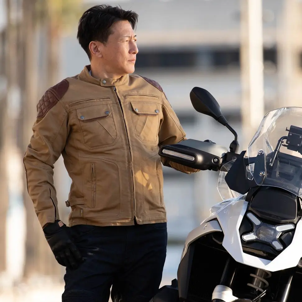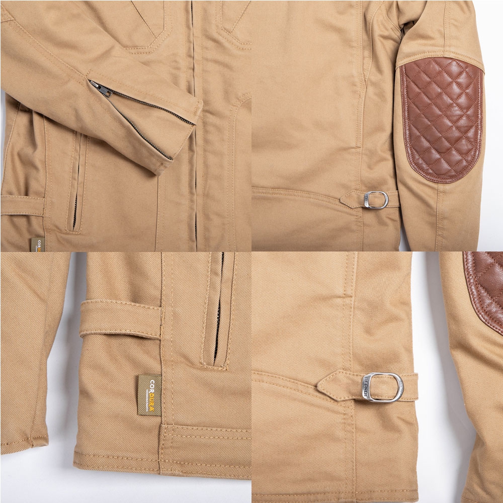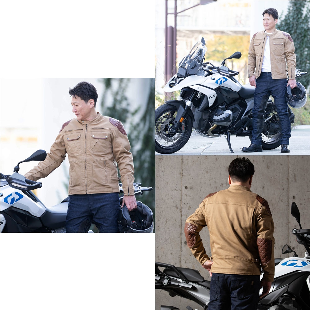 肩・肘の本革パテッドがアクセントのアドベンチャースタイルのジャケット。