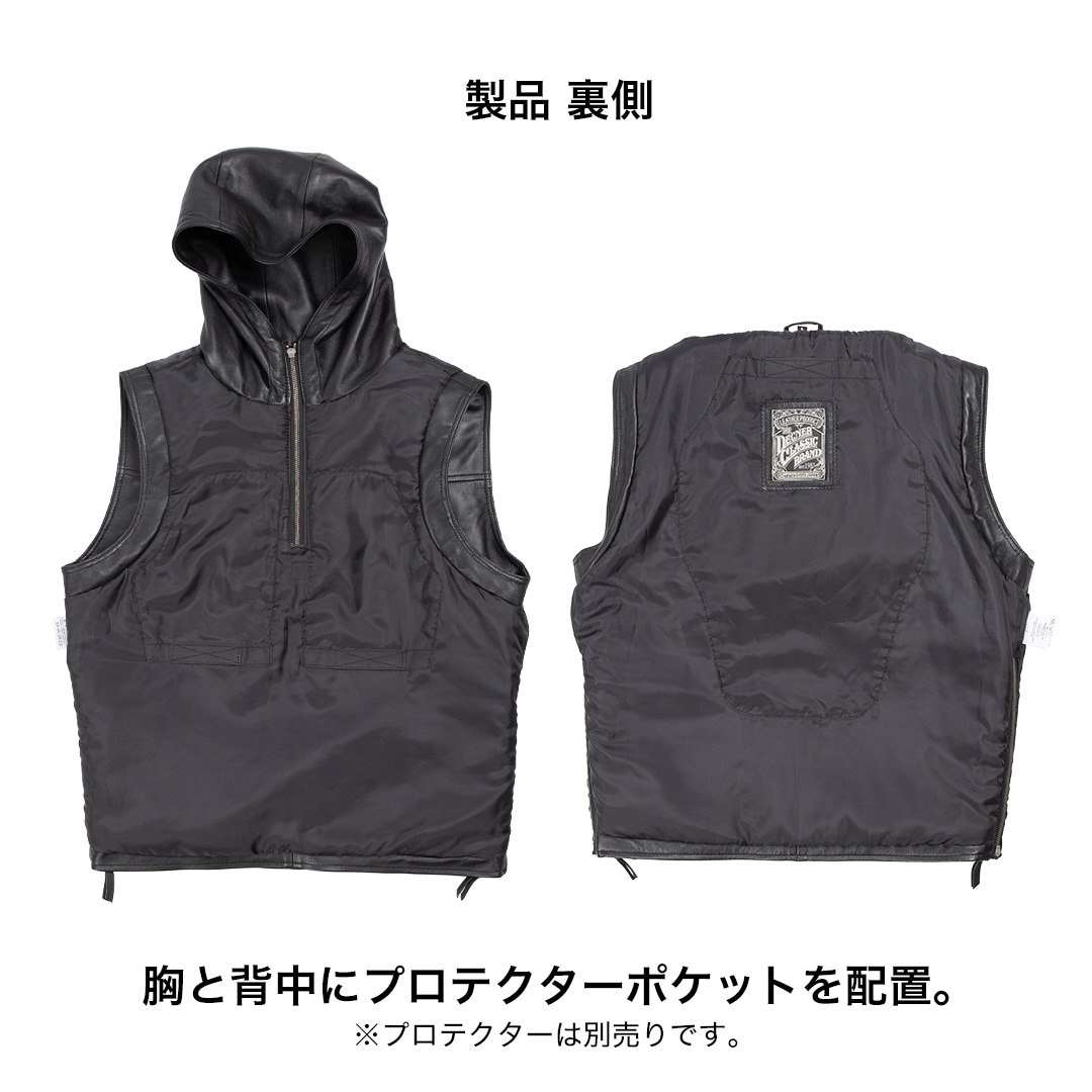 背中・胸にはプロテクターポケットがついており、別売のプロテクターを装着できる。