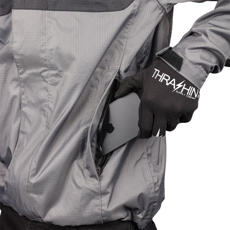 バイクに乗っている時はもちろん降りた時にも雨や風からライダーを保護するようにデザインされたレインジャケット。