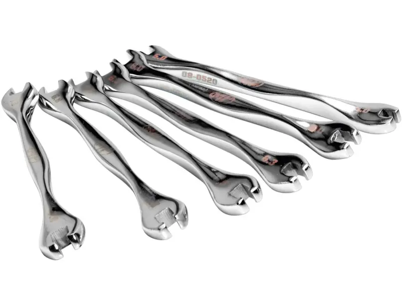 ハンドルもエルゴ仕様で疲れにくくプロ仕様のスポークレンチです。