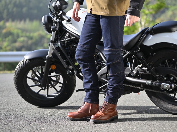 ワイズE相当の細身シルエットに少し厚めのアウトソールで、レザーブーツらしい重厚感。