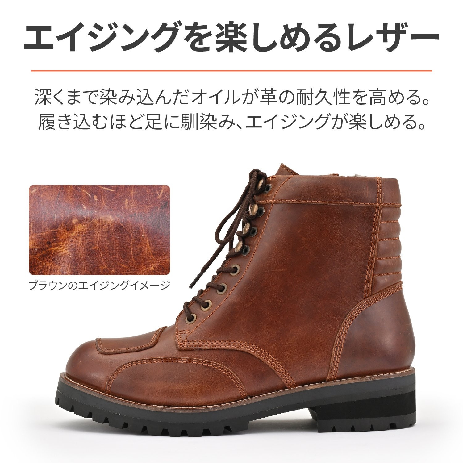 一般的なものより多くのオイルを染み込ませた牛革で、履き込むほどに馴染んでエイジングが楽しめます。