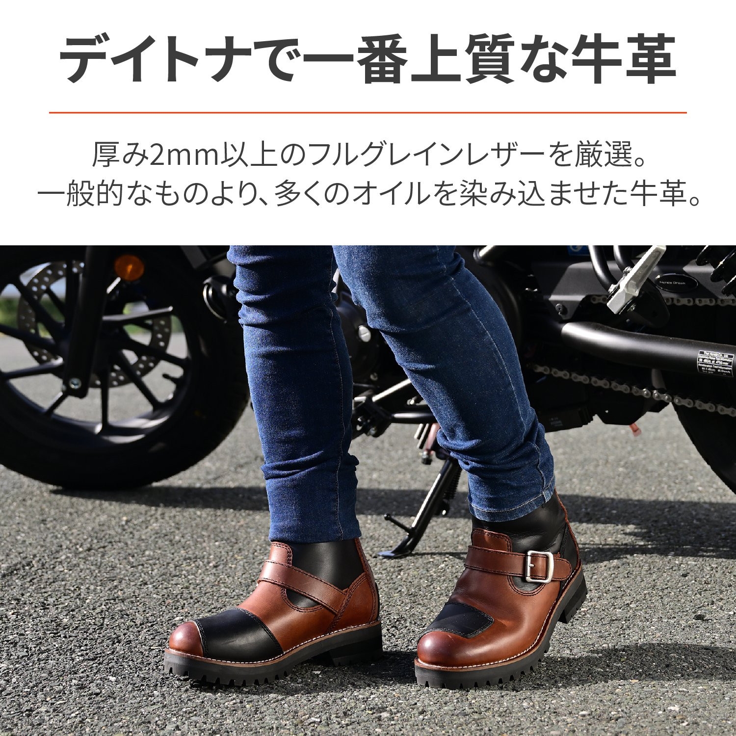 2mm以上の厚みを持つフルグレインレザーを厳選。デイトナレザーブーツで最も上質な牛革を使用しています。