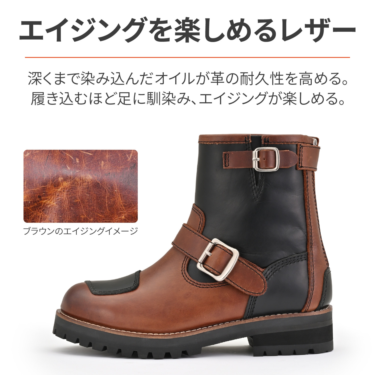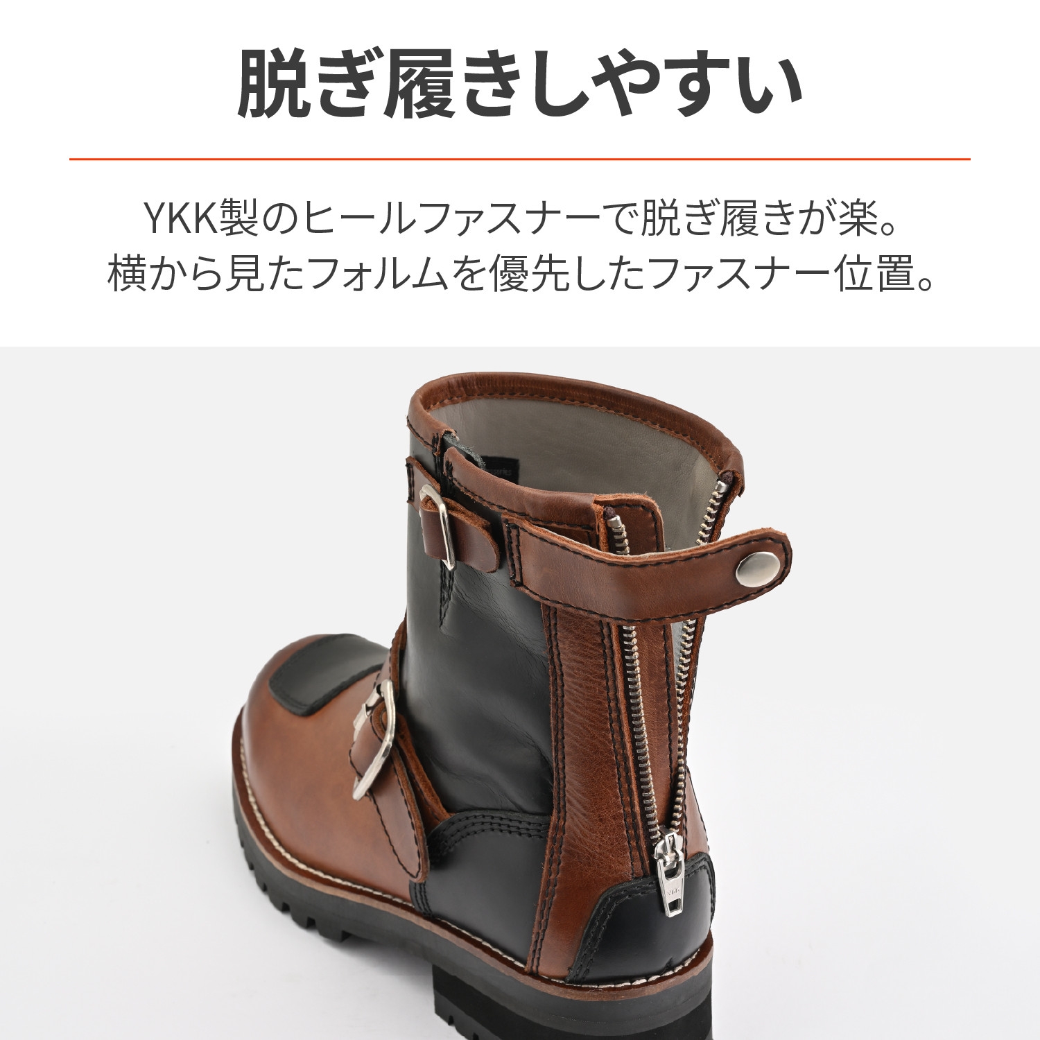 MaxFritzの佐藤氏が監修、オーソドックスなエンジニアブーツ形状をベースに、カジュアルで履きやすい丈に仕上げたバイク専用ショートブーツです。