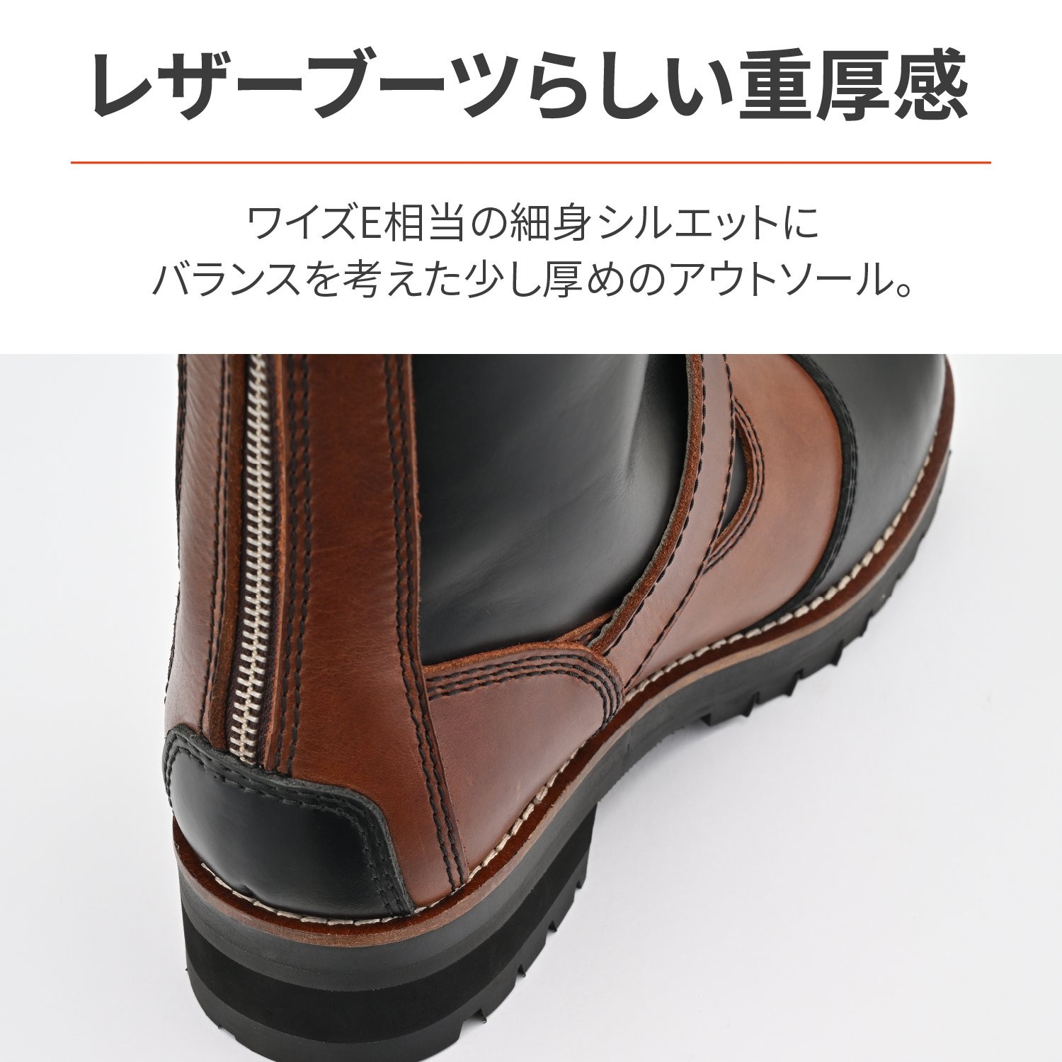 Eワイズ相当で細身のシルエットに仕上げ、スッキリとした印象を演出。厚めのアウトソールを採用することで、細身ながらもレザーブーツらしい重厚感を加えました。