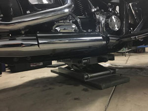 バイク整備には欠かせないジャッキ、ハーレーのような重量が重く、車高が低いので国内で流通しているものでは役不足です。