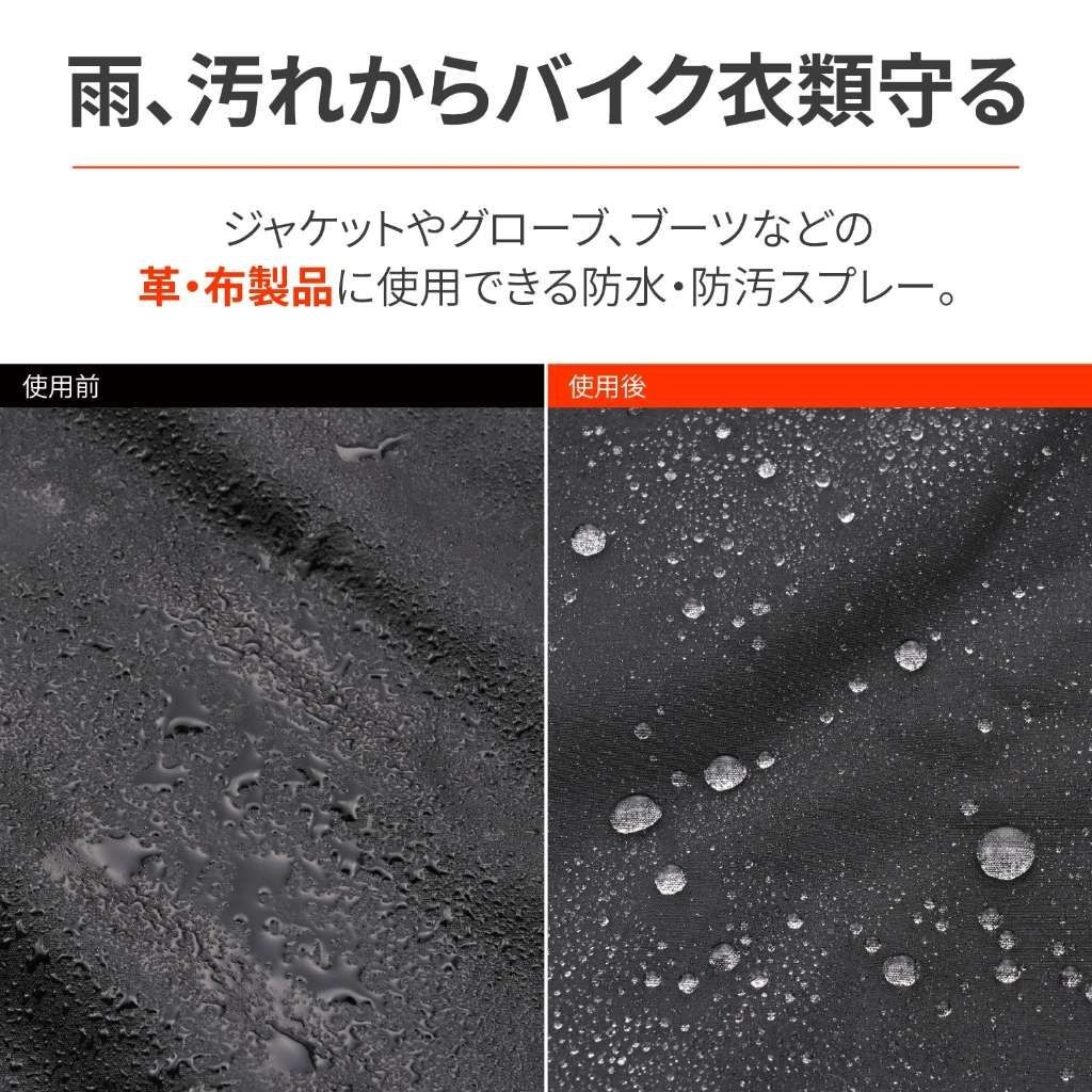 ライディングギアを雨・汚れから守る。透湿性を損なわない高性能プロテクトスプレー。