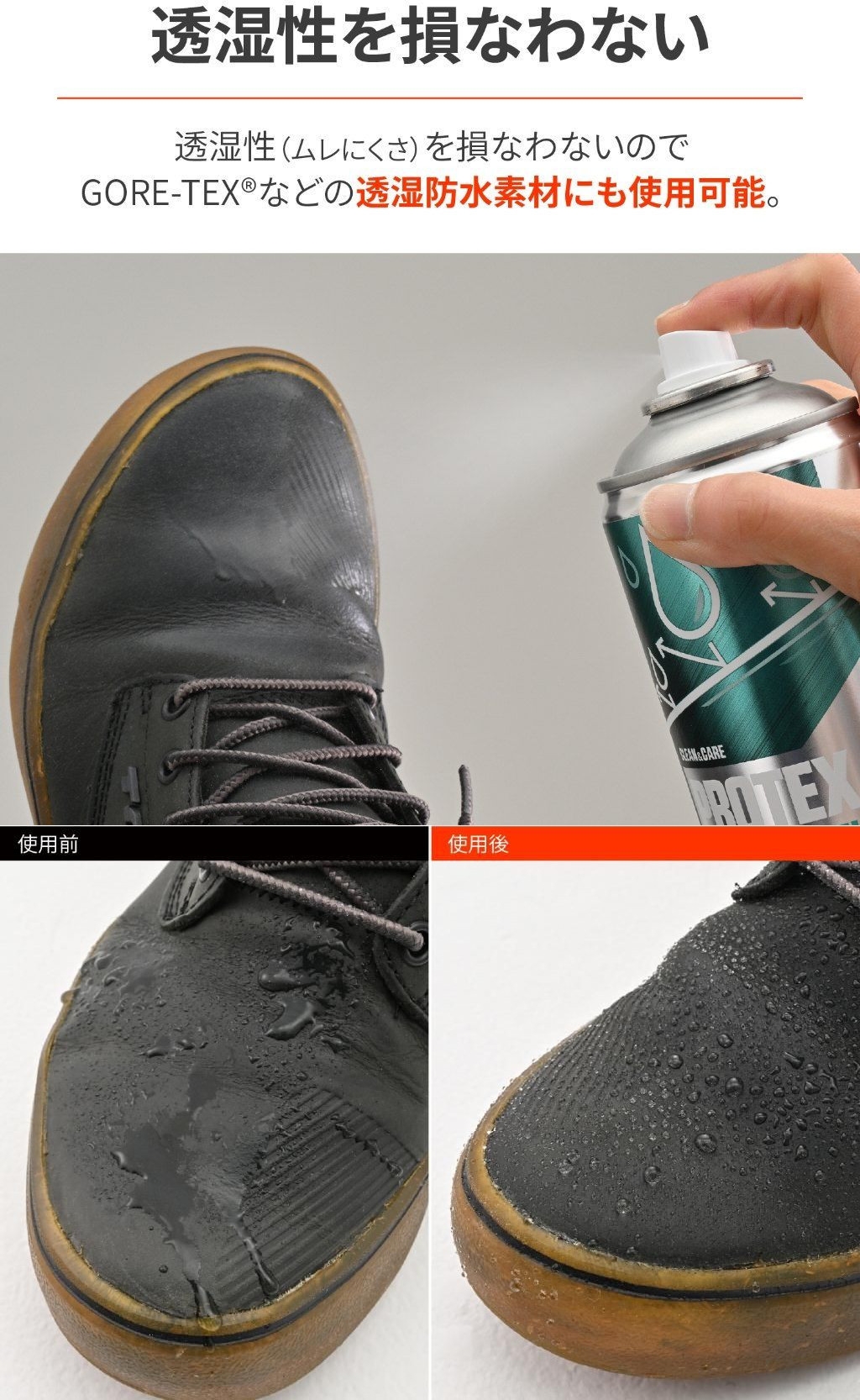 ジャケットやグローブ、ブーツなどの革・布製品に使用できる防水・防汚スプレーです。