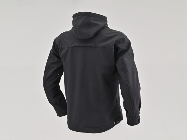 着心地の良い防風のソフトシェル生地は高い保温性を発揮。
