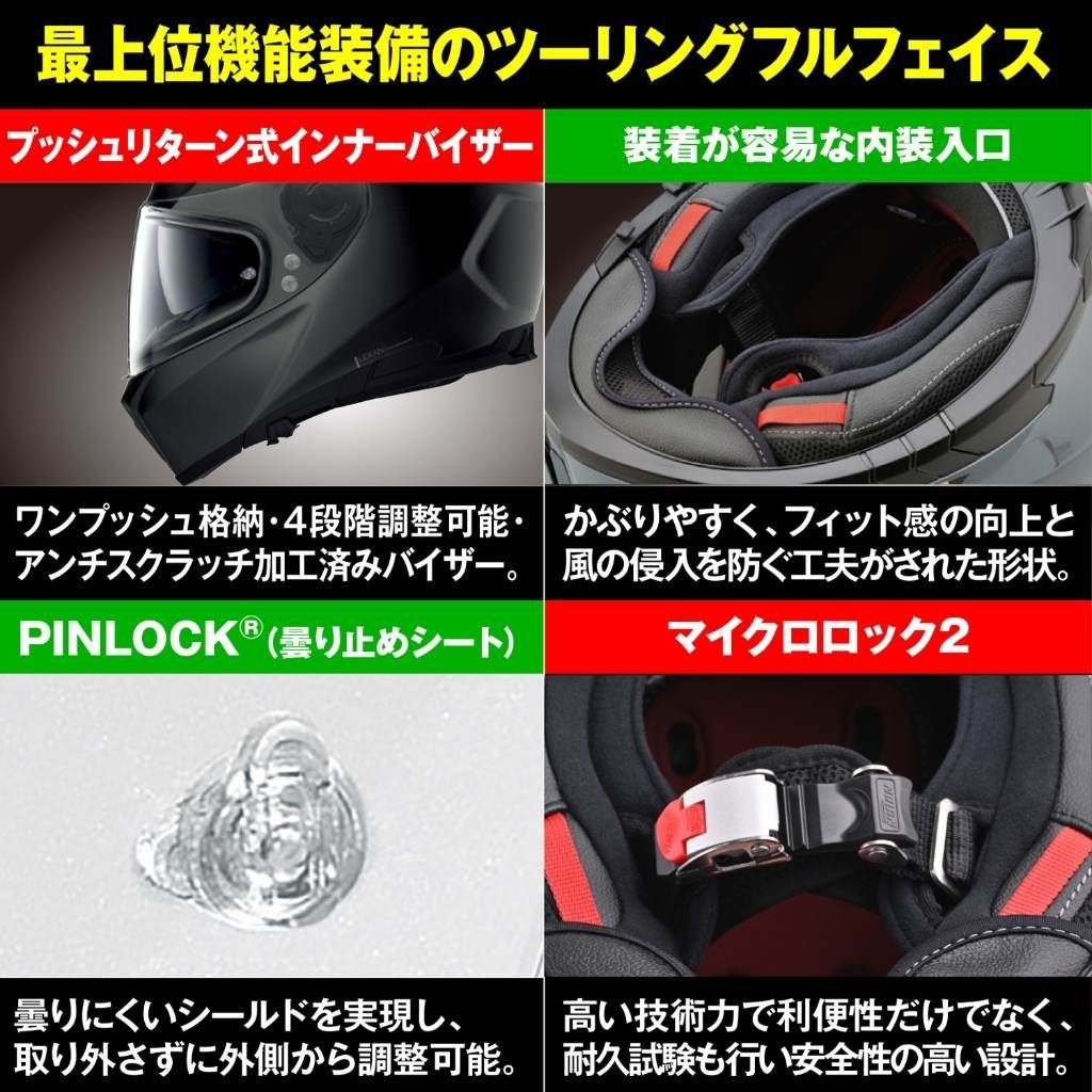 最上グレードの機能を装備することで、街乗りからロングツーリングまで幅広く対応した理想的なヘルメットです。