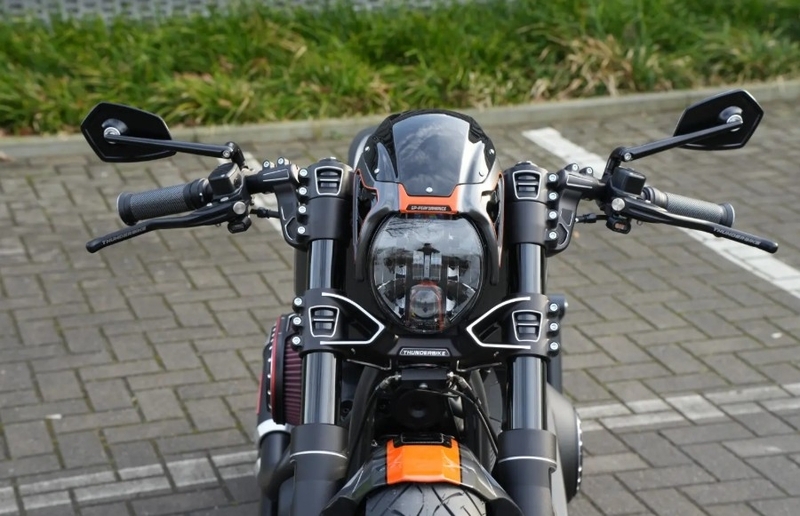 純正トリプルツリーにも装着できますが、サンダーバイク製 GP 2.0 トリプルツリーと組み合わせることにより、美しいラインと完璧に調和し、フロント周り全体のクオリティを一気に高めます。
