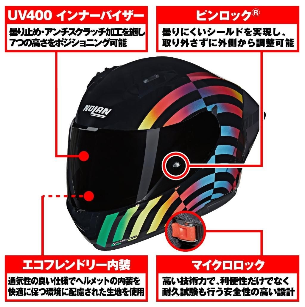 - 付属品:PINLOCK®曇り止めシート、ダークスモークシールド(クリアーシールド標準装備)