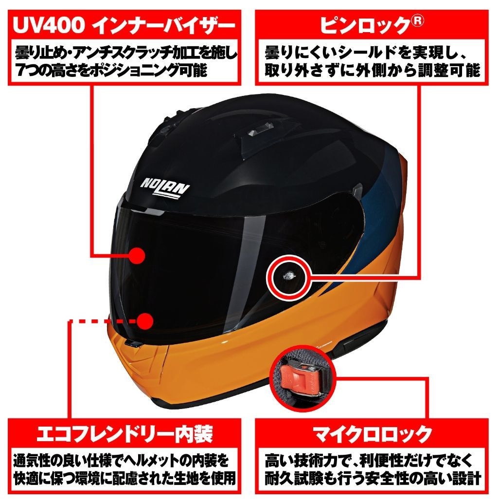 広い視界や優れたベンチレーションシステム、取り外して洗える内装パッドやインナーバイザーなどで着用時も快適に。