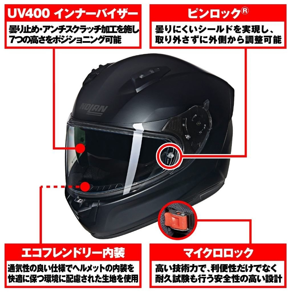 広い視界や優れたベンチレーションシステム、取り外して洗える内装パッドやインナーバイザーなどで着用時も快適に。