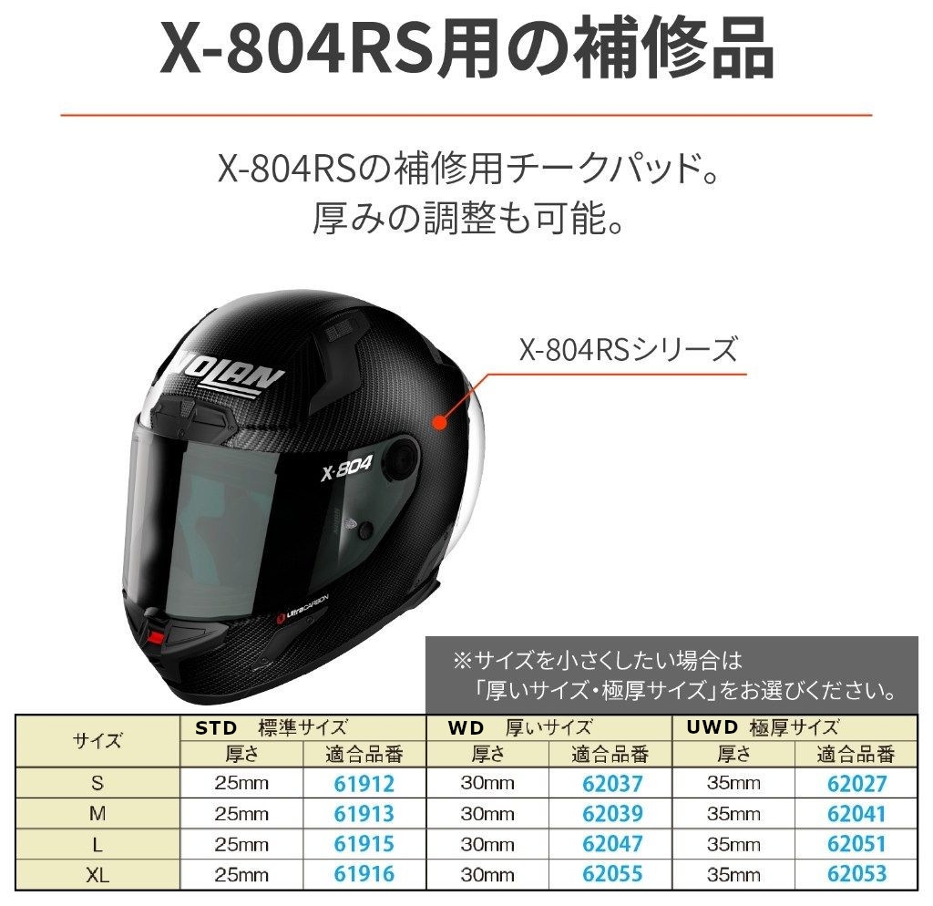 X-804RS チークパッド グレー NOLAN(ノーラン) 画像は【STD 厚さ25mm】です。 画像は【STD 厚さ25mm】です。 9,240 商品を選択する 電話注文・お問い合わせ 052-744-1891 電話受付 10:00~19:00年中無休 送料:700円~送料・お支払について 合計金額 30,000円以上のお買い物で送料無料 この商品について問い合わせる お問い合わせフォーム LINE からお問い合わせ 商品詳細 012 詳細 品番 発送目安 在庫数 価格 カート 商品を選択する9,240 詳細 サイズ 【STD 厚さ25mm】S 品番 61912 発送目安 在庫数 0 納期不確定 価格 9,240 92 カート カートに入れる お気に入り 生産連絡 詳細 サイズ 【STD 厚さ25mm】M 品番 61913 発送目安 在庫数 0 納期不確定 価格 9,240 92 カート カートに入れる お気に入り 生産連絡 詳細 サイズ 【STD 厚さ25mm】L 品番 61915 発送目安 在庫数 0 納期不確定 価格 9,240 92 カート カートに入れる お気に入り 生産連絡 詳細 サイズ 【STD 厚さ25mm】XL 品番 61916 発送目安 在庫数 0 納期不確定 価格 9,240 92 カート カートに入れる お気に入り 生産連絡 詳細 サイズ 【WD 厚さ30mm】S 品番 62037 発送目安 在庫数 0 納期不確定 価格 9,240 92 カート カートに入れる お気に入り 生産連絡 詳細 サイズ 【WD 厚さ30mm】M 品番 62039 発送目安 在庫数 0 納期不確定 価格 9,240 92 カート カートに入れる お気に入り 生産連絡 詳細 サイズ 【WD 厚さ30mm】L 品番 62047 発送目安 在庫数 0 納期不確定 価格 9,240 92 カート カートに入れる お気に入り 生産連絡 詳細 サイズ 【WD 厚さ30mm】XL 品番 62055 発送目安 在庫数 0 納期不確定 価格 9,240 92 カート カートに入れる お気に入り 生産連絡 詳細 サイズ 【UWD 厚さ35mm】S 品番 62027 発送目安 在庫数 0 納期不確定 価格 9,240 92 カート カートに入れる お気に入り 生産連絡 詳細 サイズ 【UWD 厚さ35mm】M 品番 62041 発送目安 在庫数 0 納期不確定 価格 9,240 92 カート カートに入れる お気に入り 生産連絡 詳細 サイズ 【UWD 厚さ35mm】L 品番 62051 発送目安 在庫数 0 納期不確定 価格 9,240 92 カート カートに入れる お気に入り 生産連絡 詳細 サイズ 【UWD 厚さ35mm】XL 品番 62053 発送目安 在庫数 0 納期不確定 価格 9,240 92 カート カートに入れる お気に入り 生産連絡 商品情報 カラーグレー サイズサイズS/M/L/XL、厚さ25/30/35mm メーカーNOLAN(ノーラン) 商品説明 X-804RS ULTRA CARBON 補修部品。 この商品のインプレッション 0総合評価 0 商品インプレッションを書く まだインプレッションはありません。