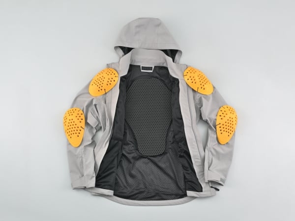 肩と肘にCEレベル1、背中にウレタンフォームのプロテクター標準装備。