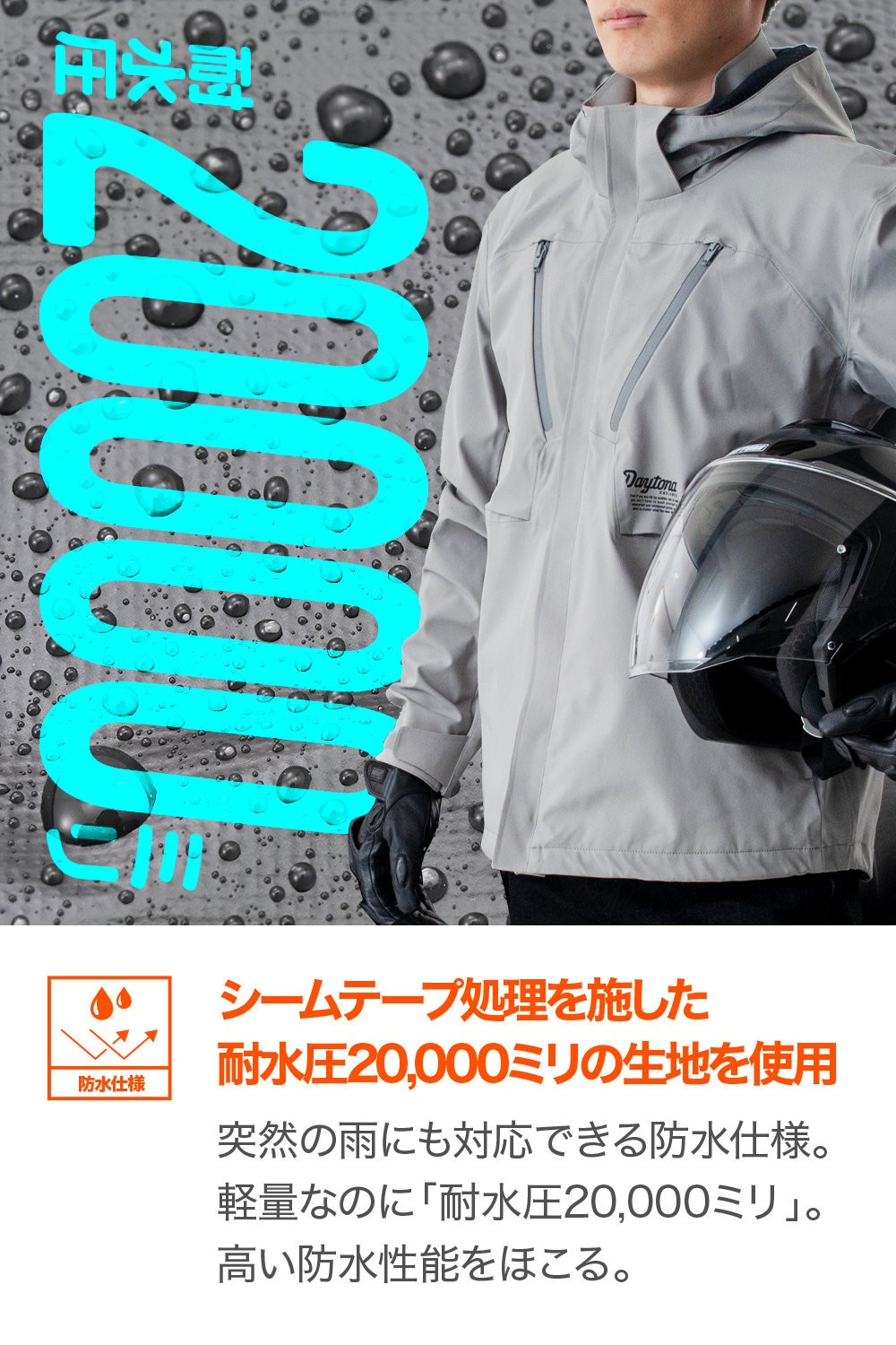 - 表地:耐水圧20,000mm以上防水生地