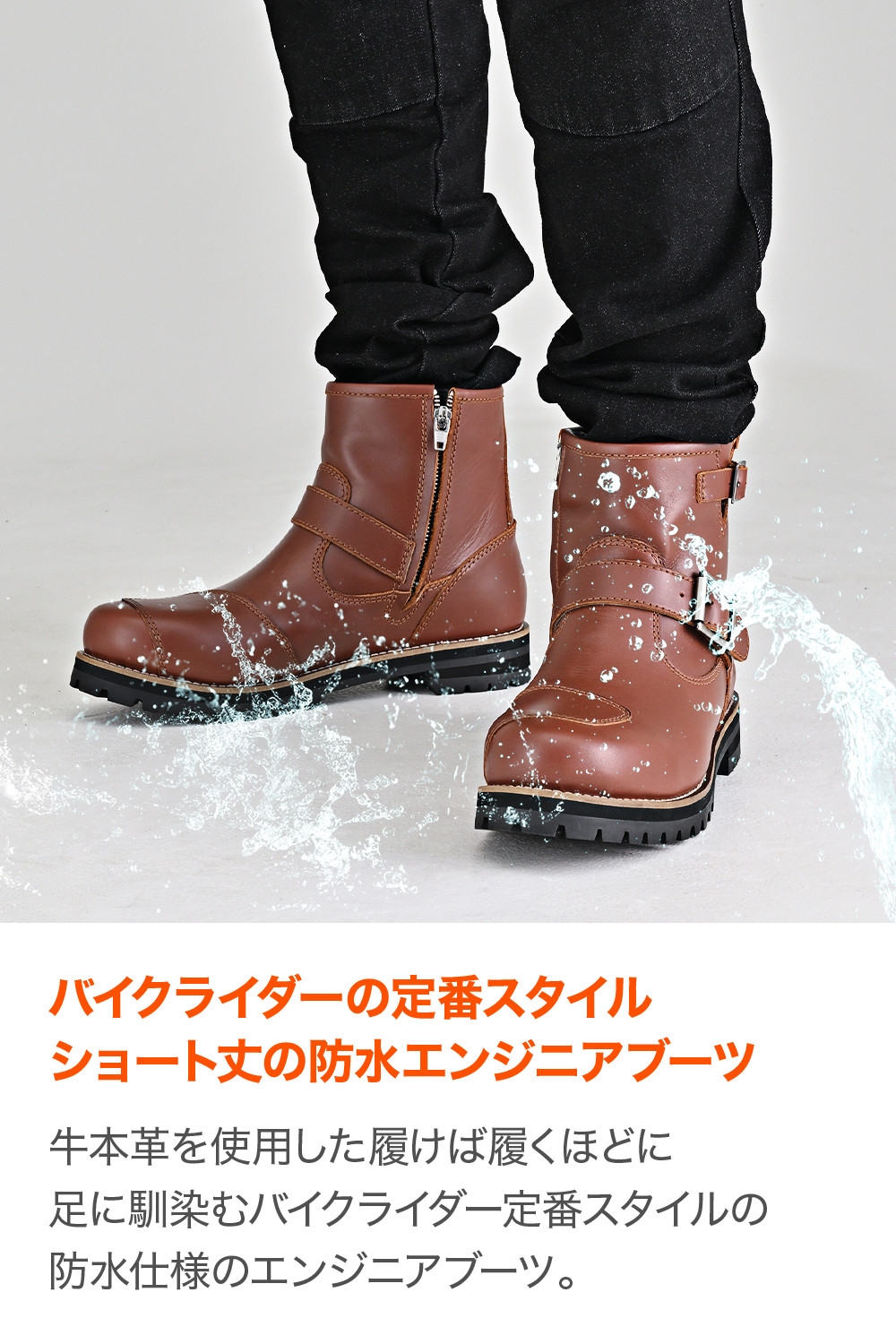 本革を使用した、ショート丈の防水エンジニアブーツ。