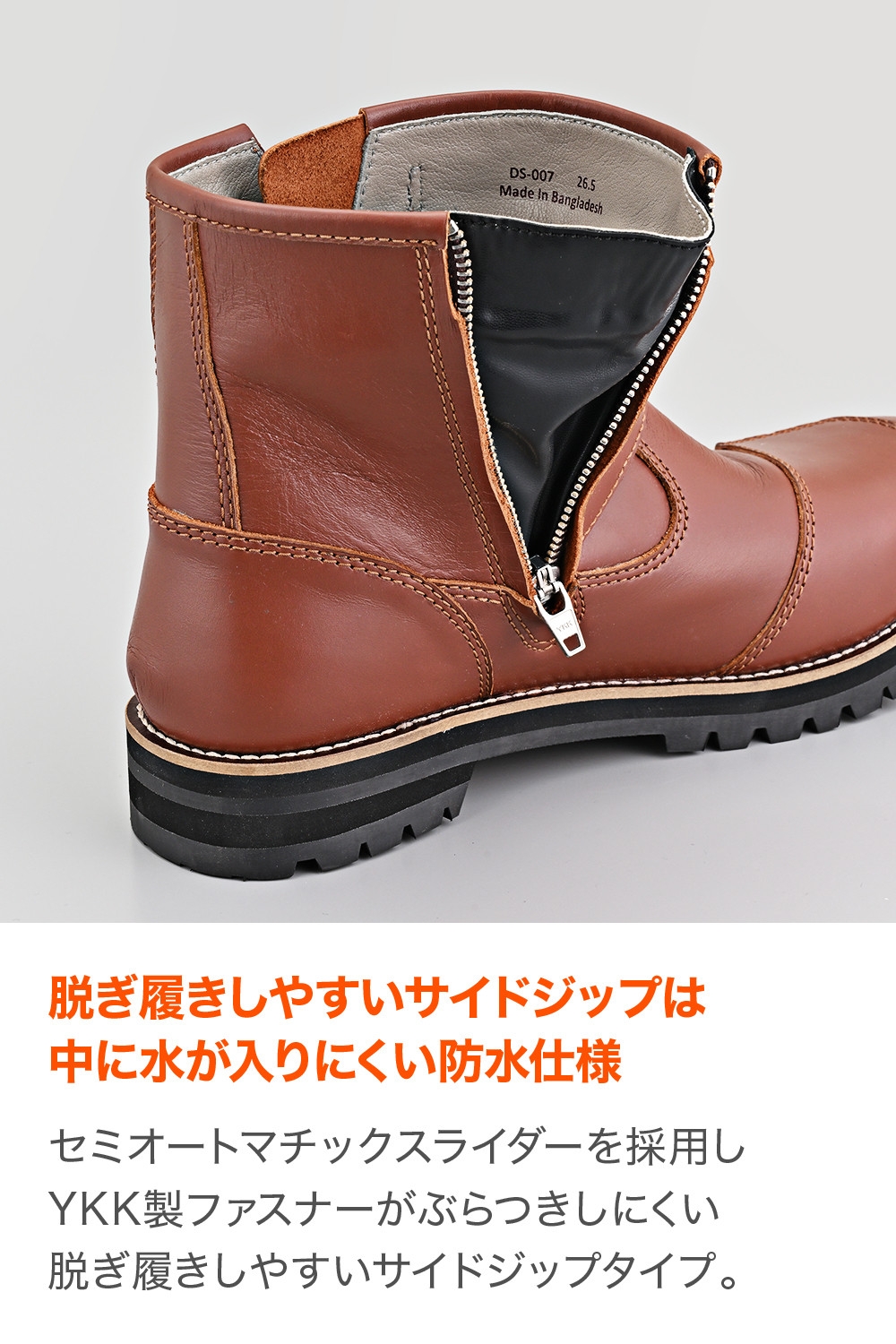サイドジップ仕様で脱ぎ履きもスムーズ。