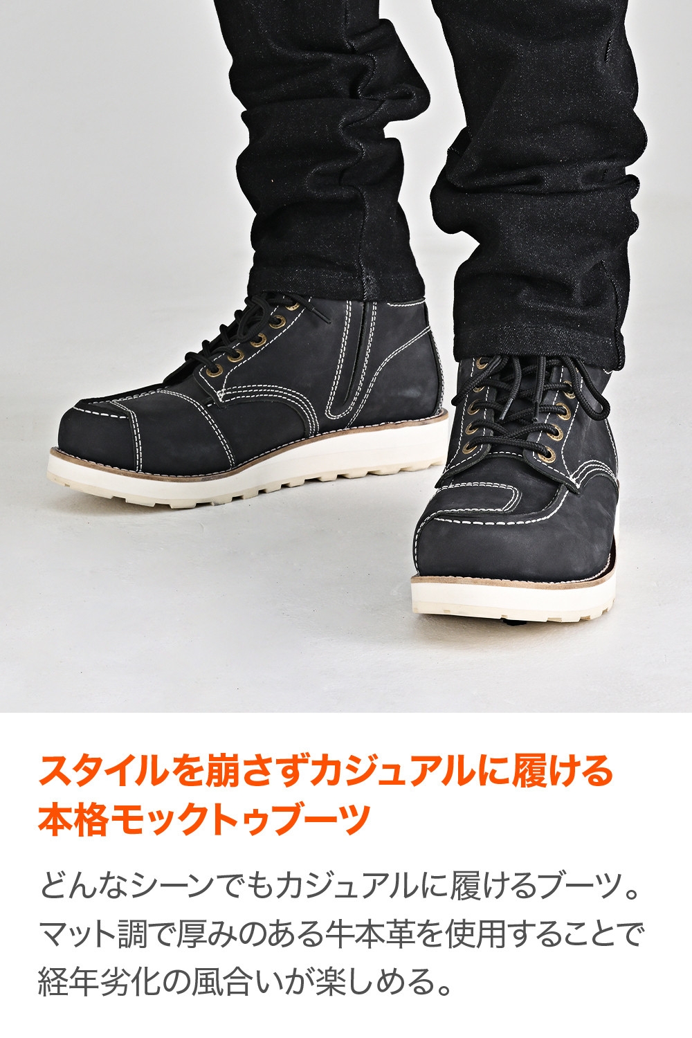 スタイルを崩さずカジュアルに履ける本格モックトゥブーツ。