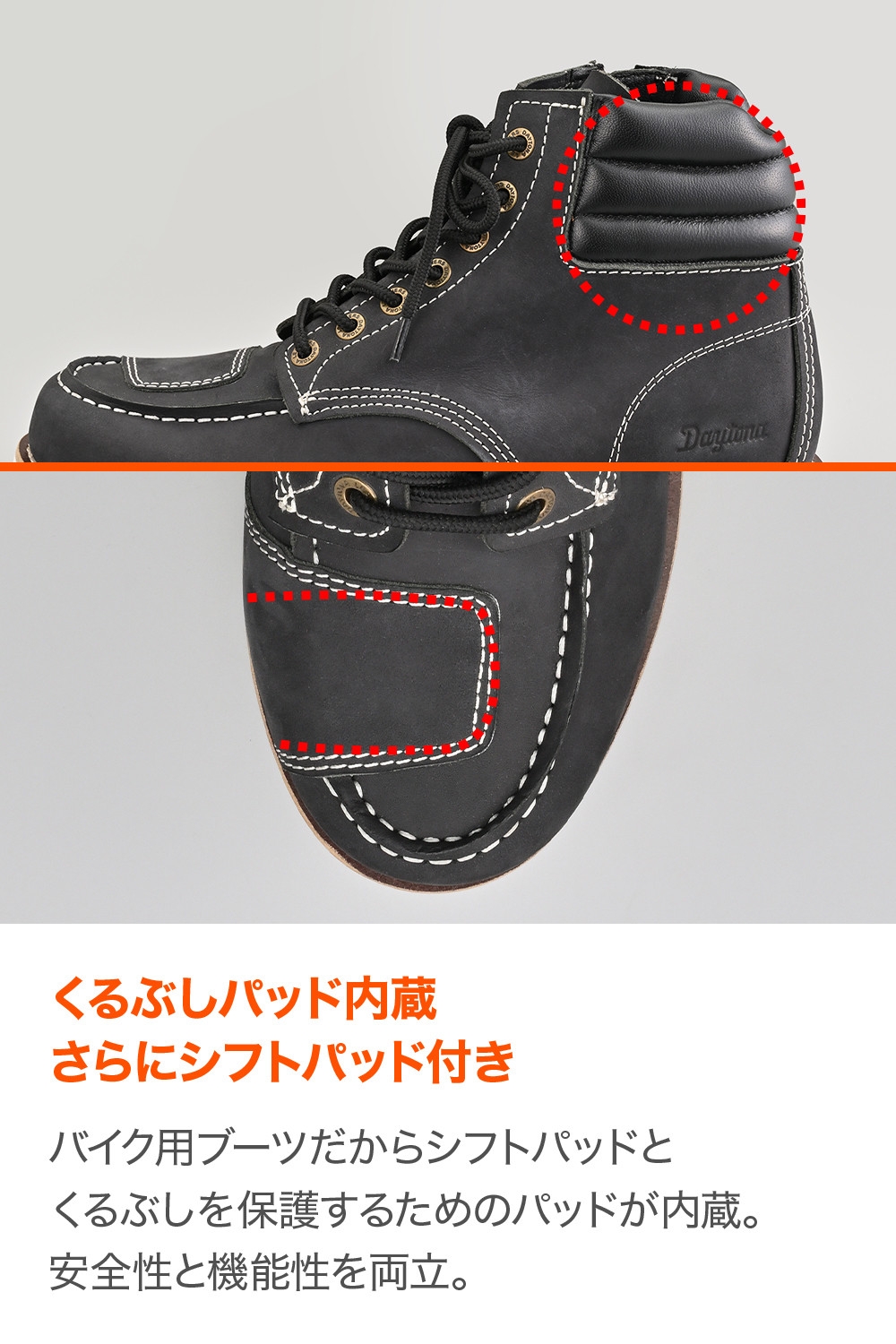 くるぶしパッド・シフトパッドを内蔵し、安全性と機能性を両立。