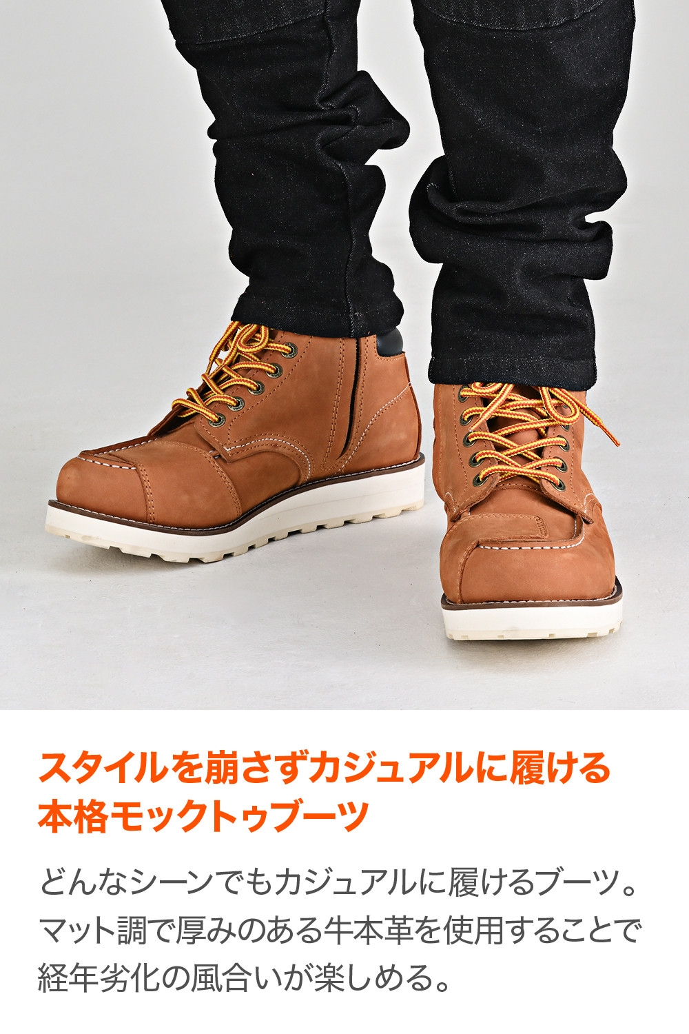 スタイルを崩さずカジュアルに履ける本格モックトゥブーツ。