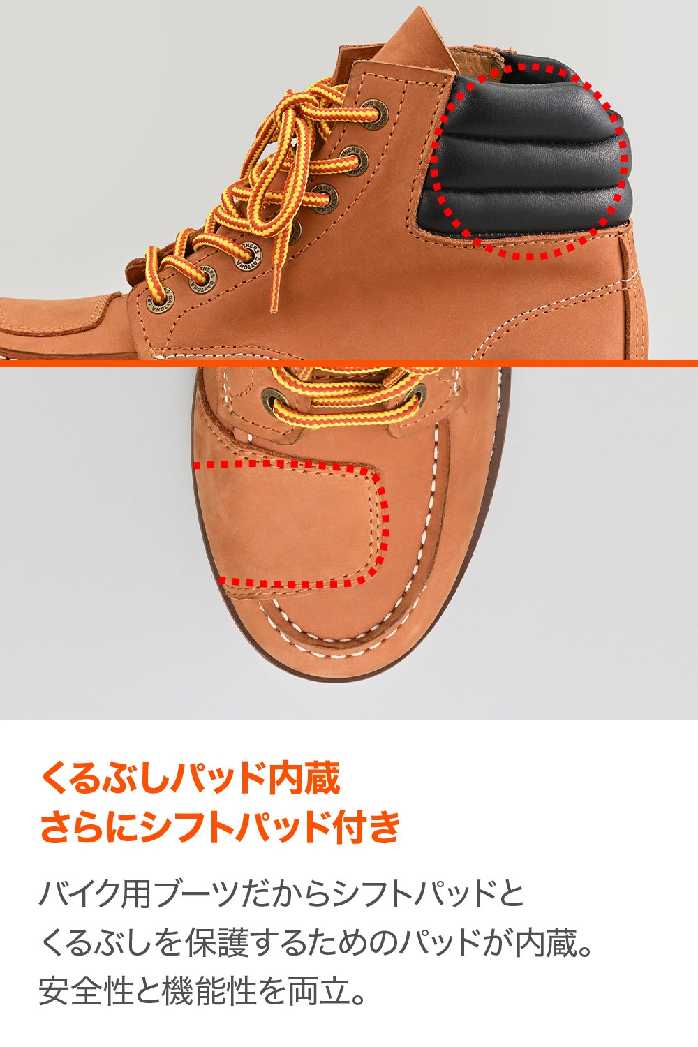 くるぶしパッド・シフトパッドを内蔵し、安全性と機能性を両立。