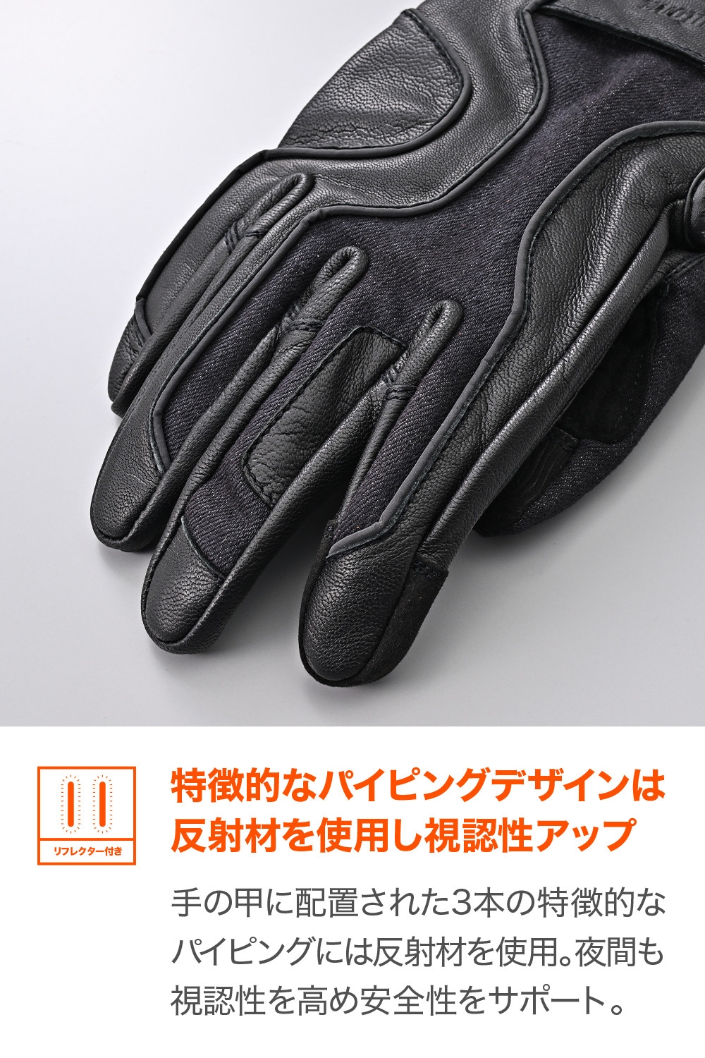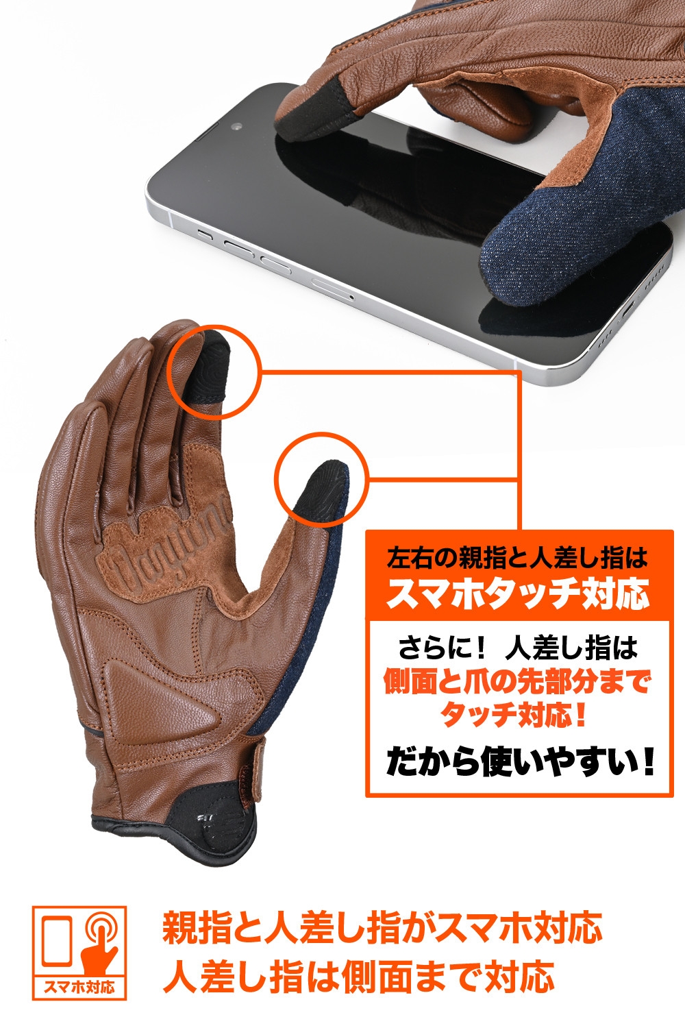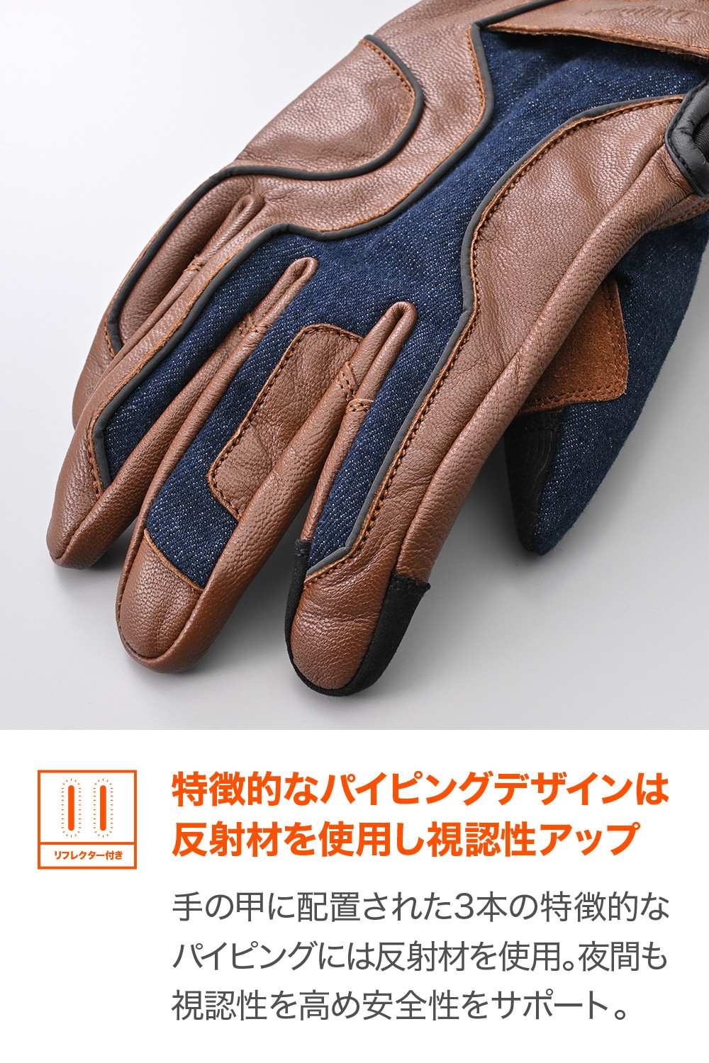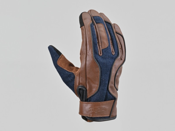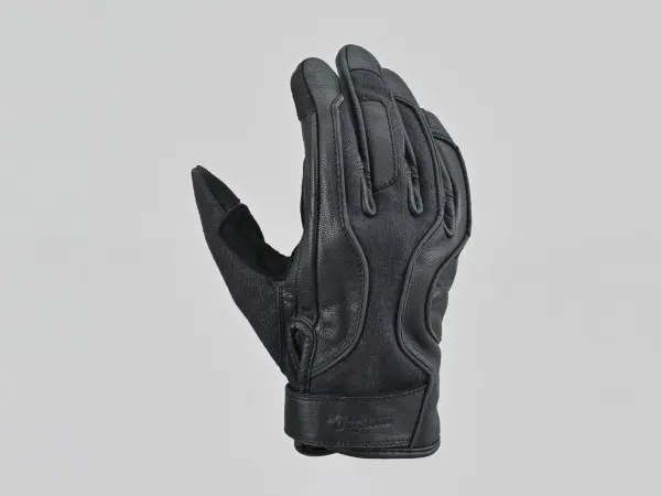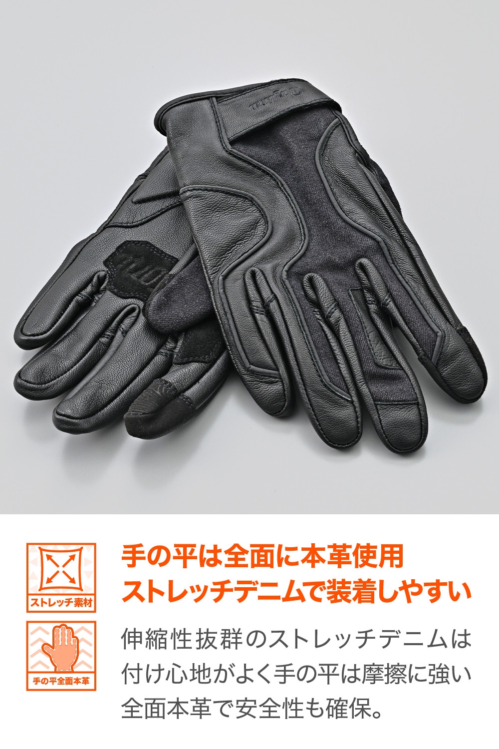 しなやかなやぎ革とストレッチデニムを組み合わせたカジュアルショートグローブ。