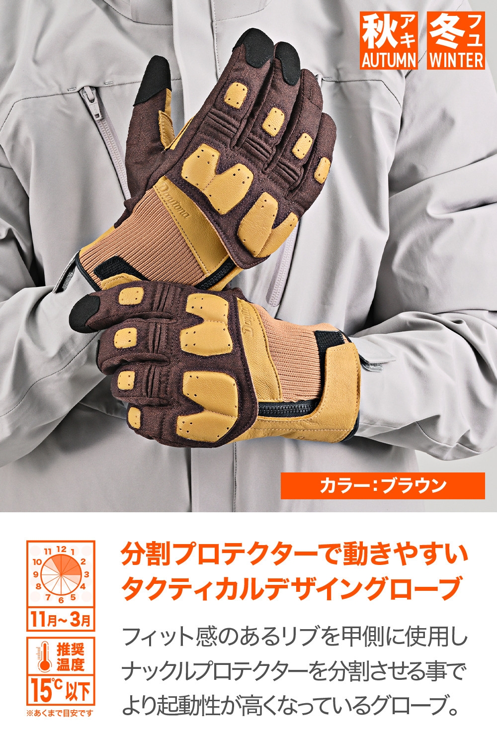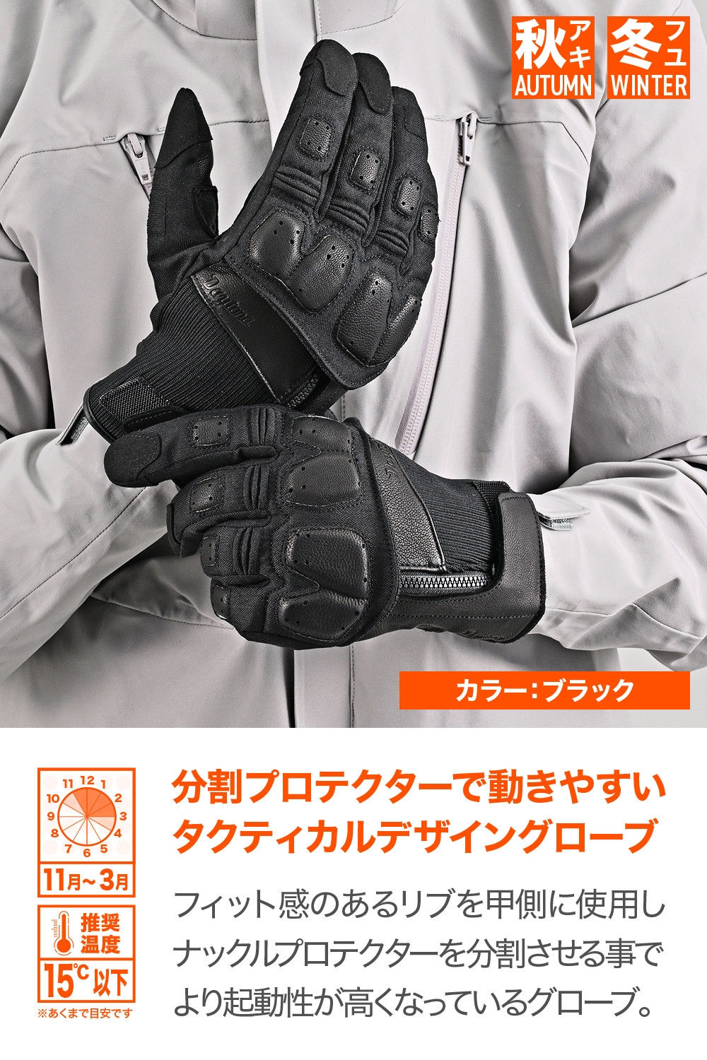リブと分割プロテクターで手にぴったりフィットし、動きやすさも備えたグローブ。
