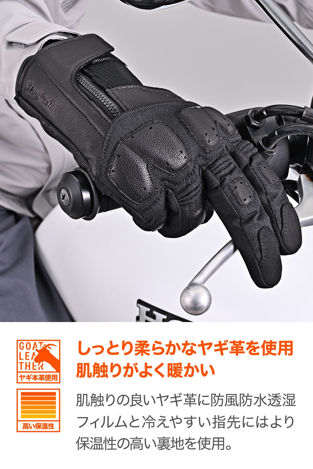 - やぎ革(表地) / 透湿防水フィルム(中間層) / ポリエステル・ナイロン・ポリウレタン(表地・裏地)