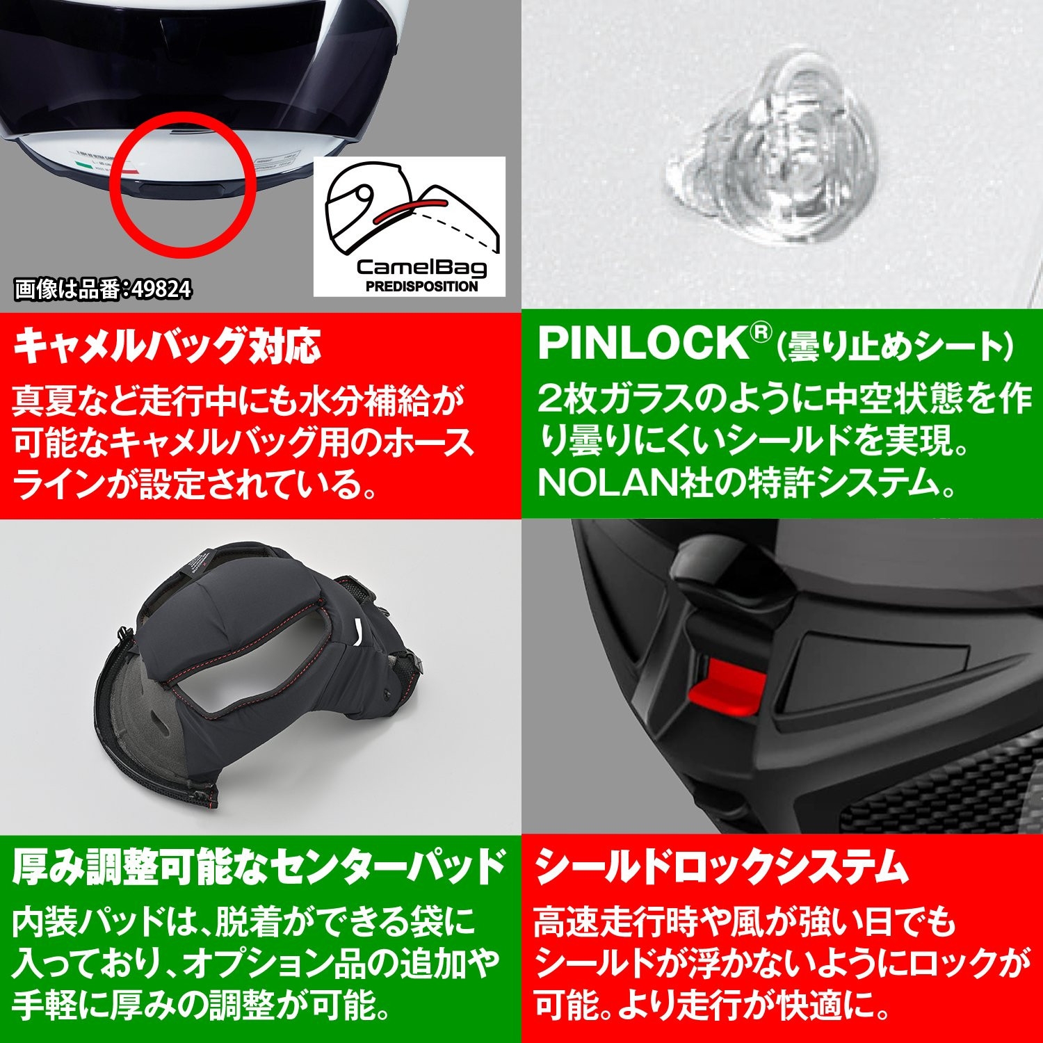 - PINLOCK®曇り止めシート、スモークシールド(クリアーシールド標準装備)