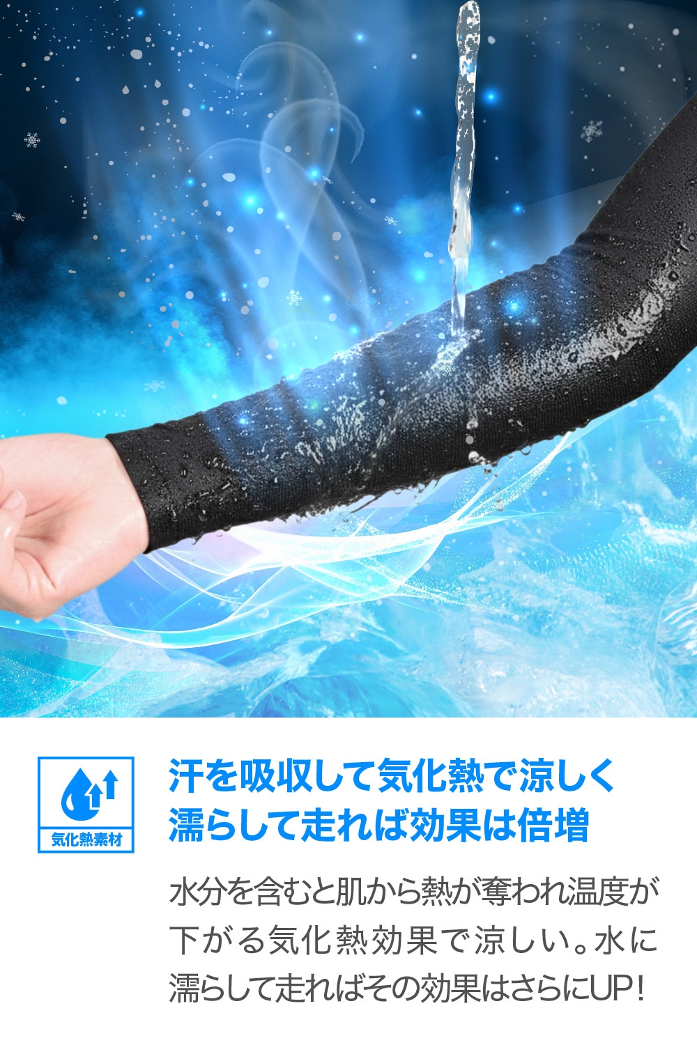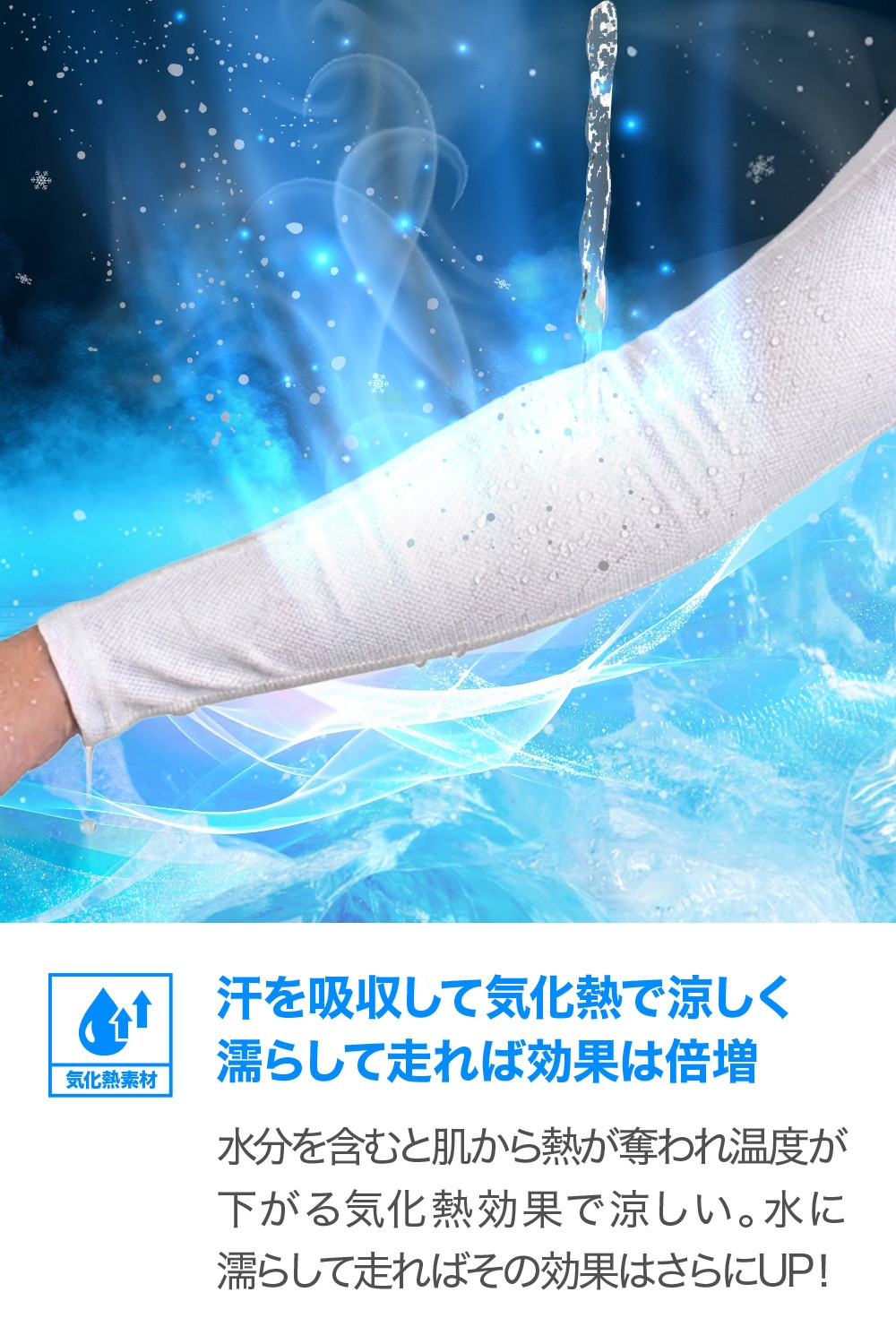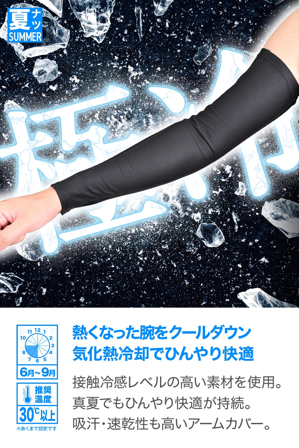 Q-MAX0.300の接触冷感素材を使用した高機能冷感アームカバー。