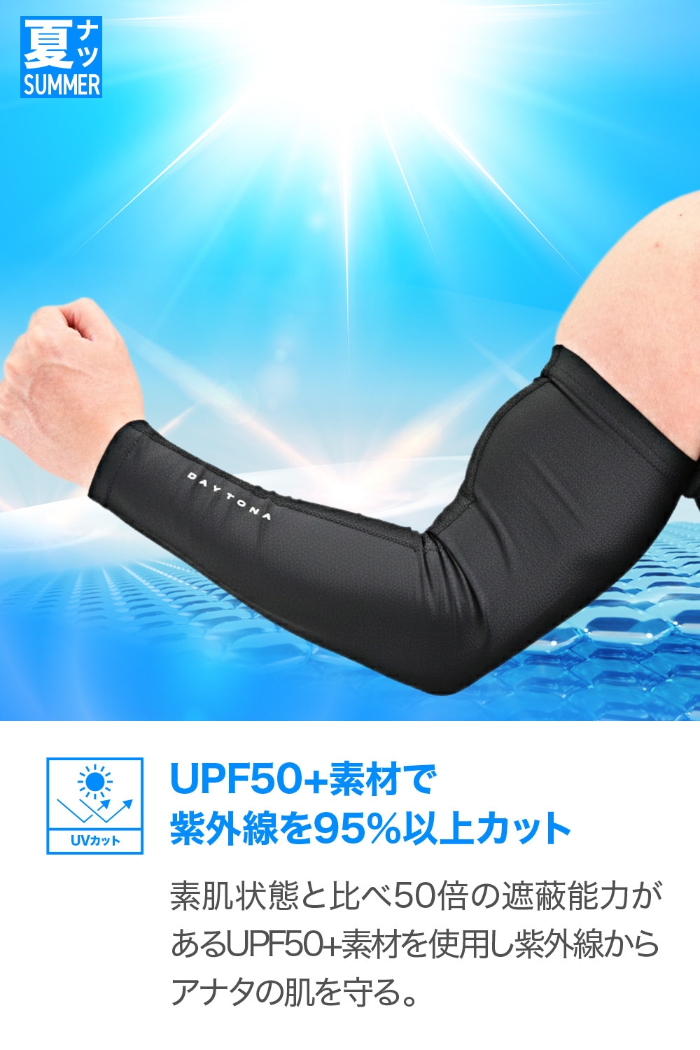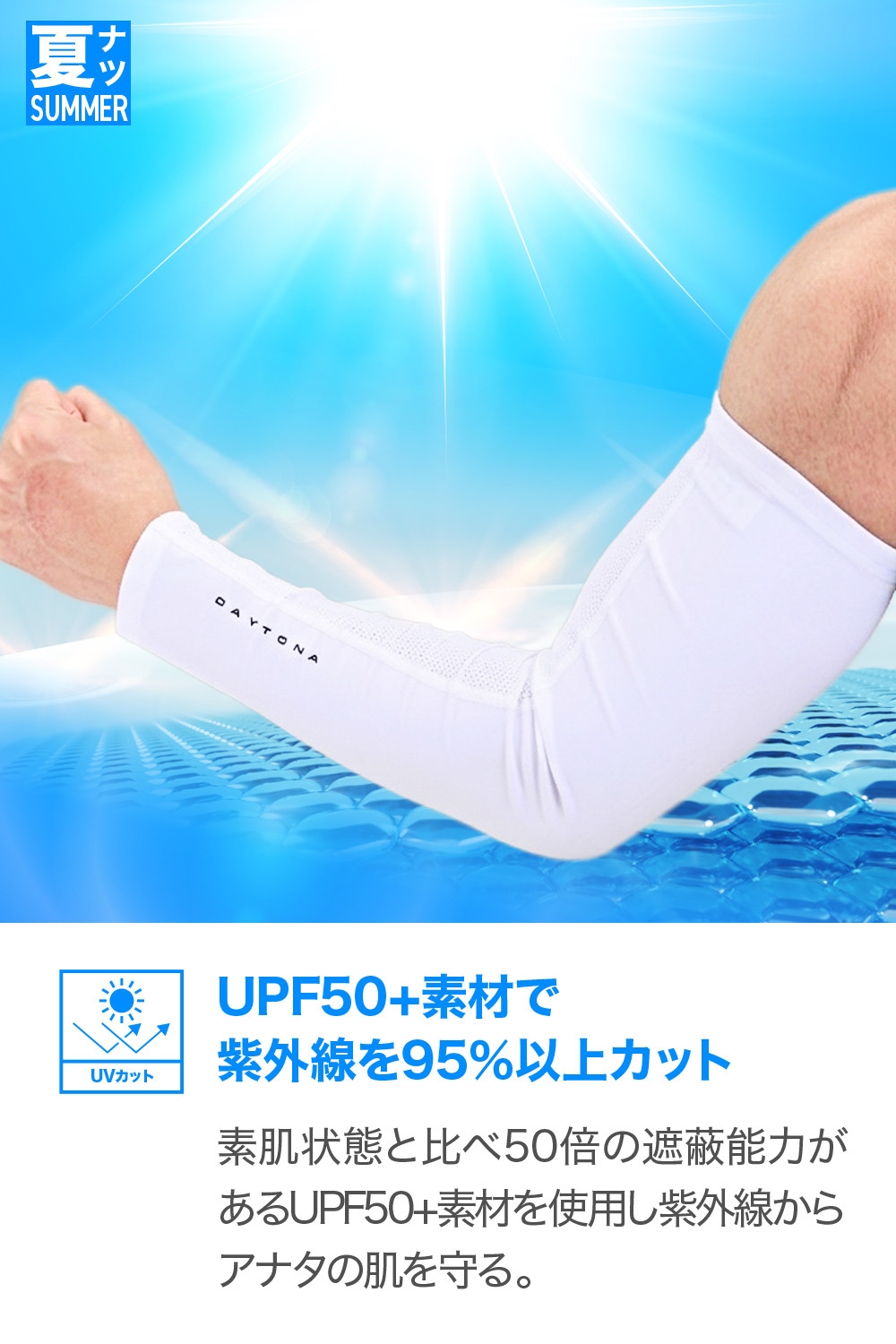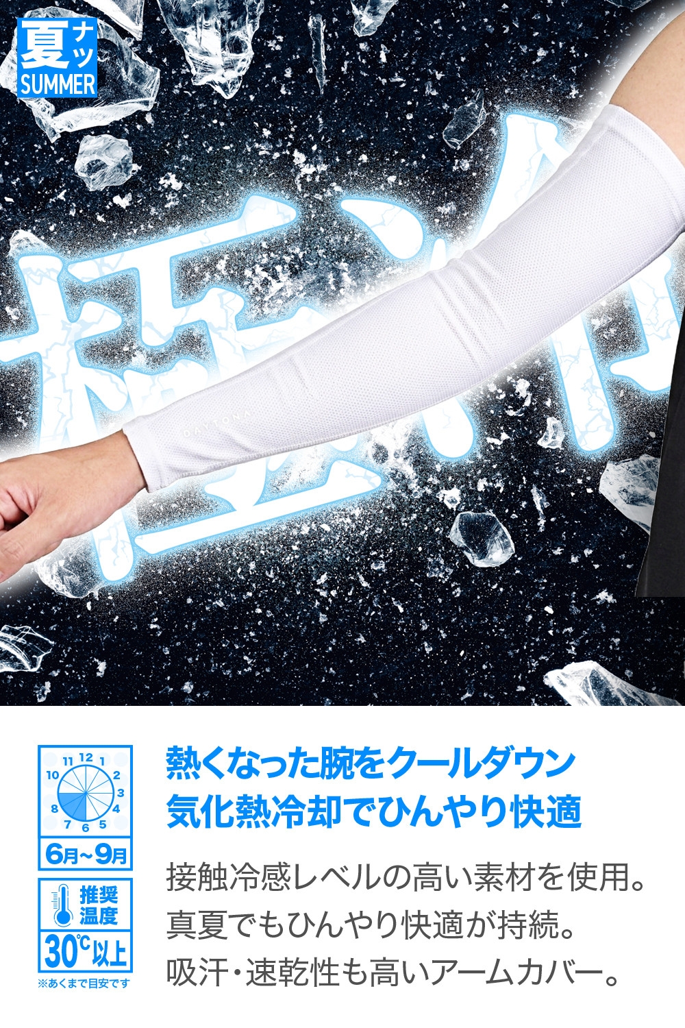 Q-MAX0.300の接触冷感素材を使用した高機能冷感アームカバー。