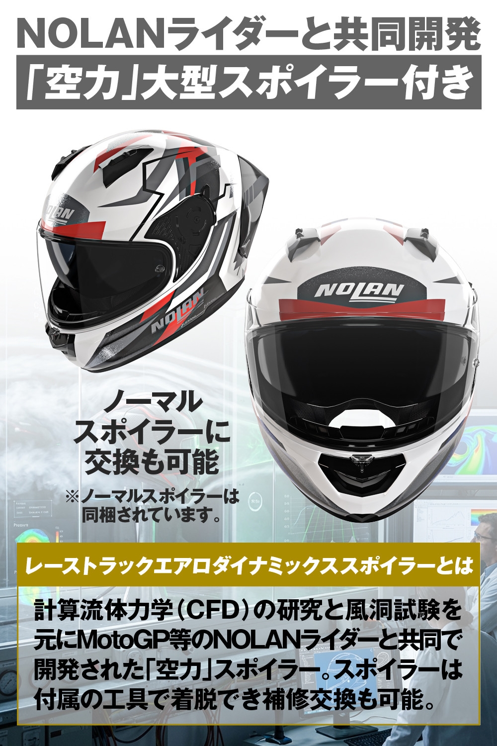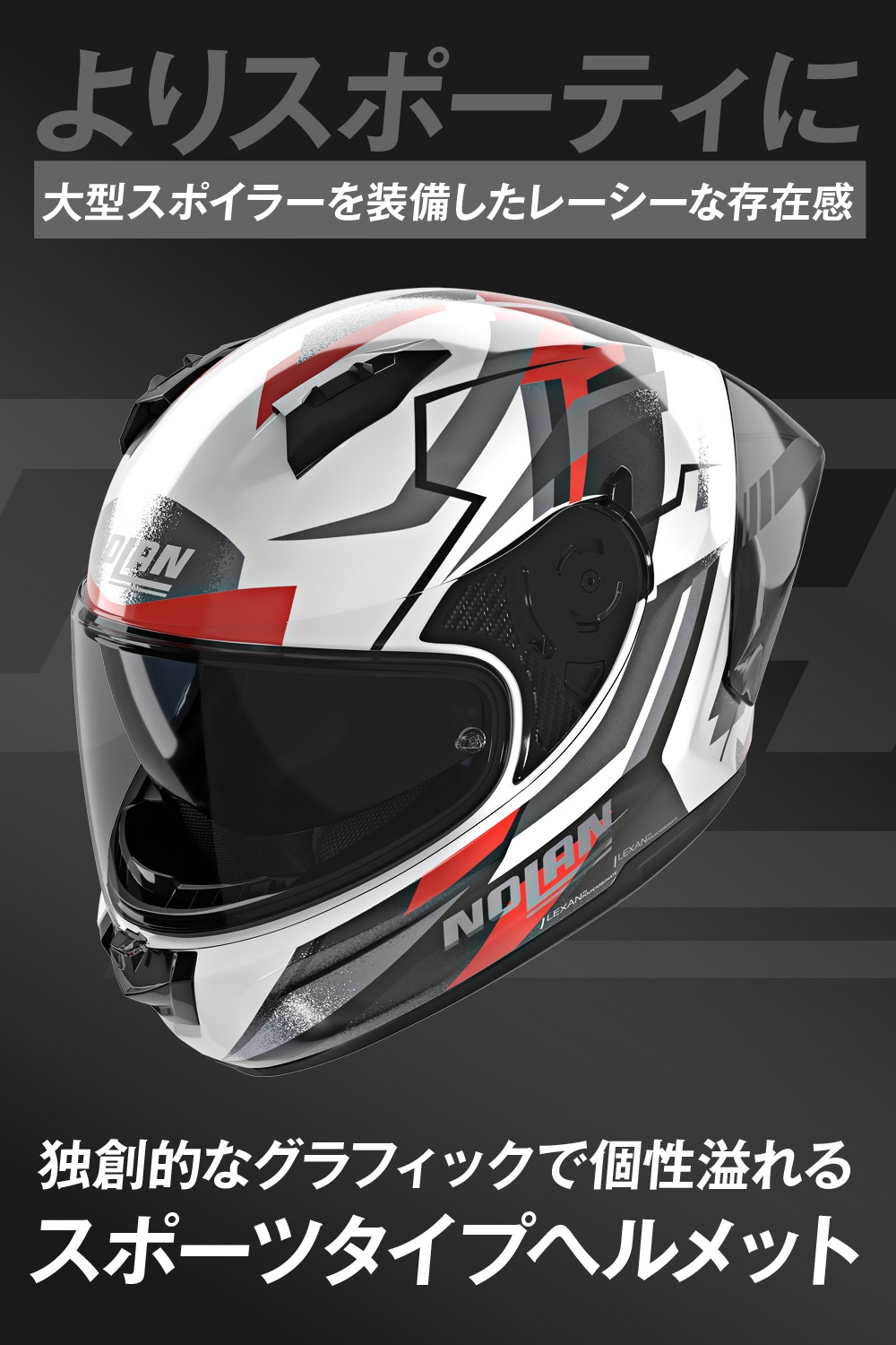 大型リアスポイラーを装備することでよりスポーティに進化した、スポーツタイプヘルメットです。