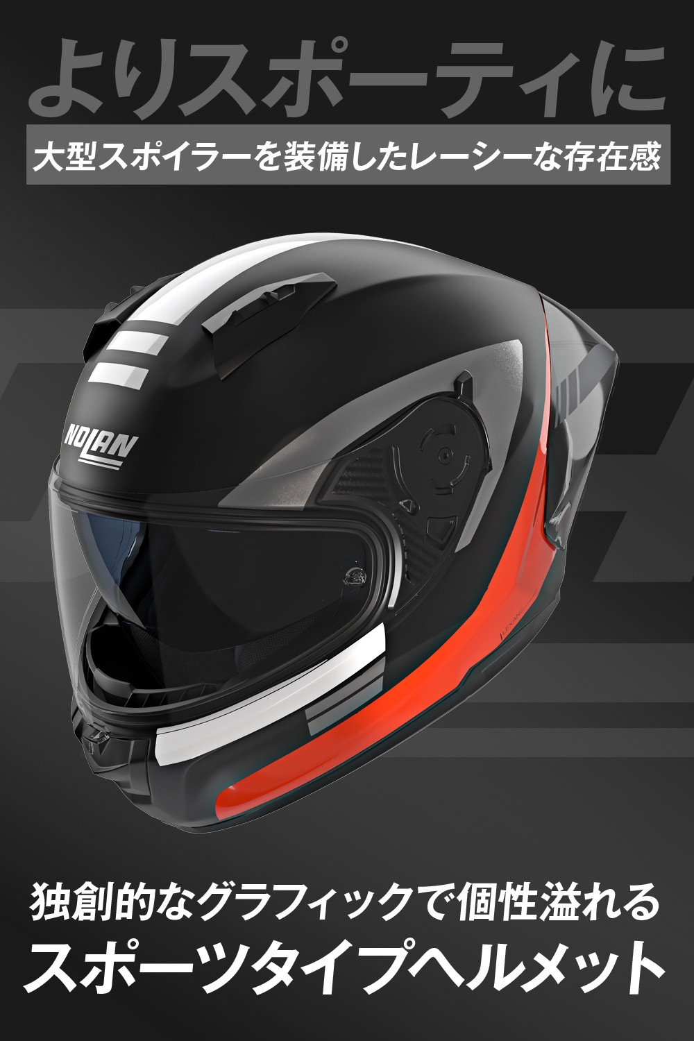 大型リアスポイラーを装備することでよりスポーティに進化した、スポーツタイプヘルメットです。