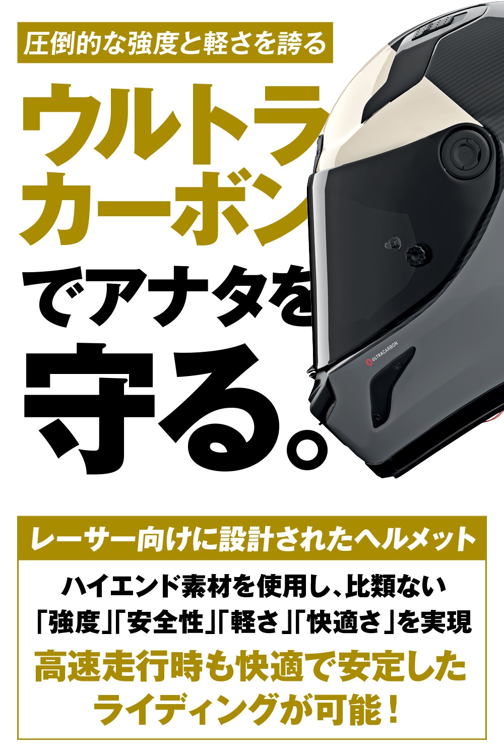 カーボンやアラミド繊維といったハイエンド素材を使用し、比類ない強度、安全性、快適さ、軽さ、そして空気力学はレーサー向けに設計されています。