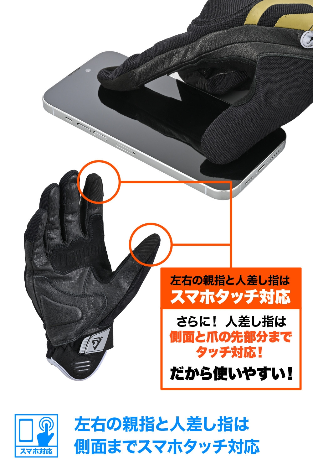タッチパネル対応。(※タッチパネルの感度はグローブとの密着度や個人差によりばらつきがあります。)