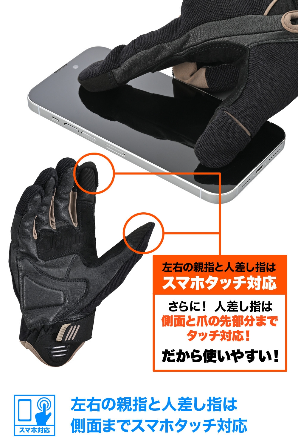 甲部に隠しハードナックルプロテクターを内蔵し、シンプルな外観ながら衝撃をガードします。